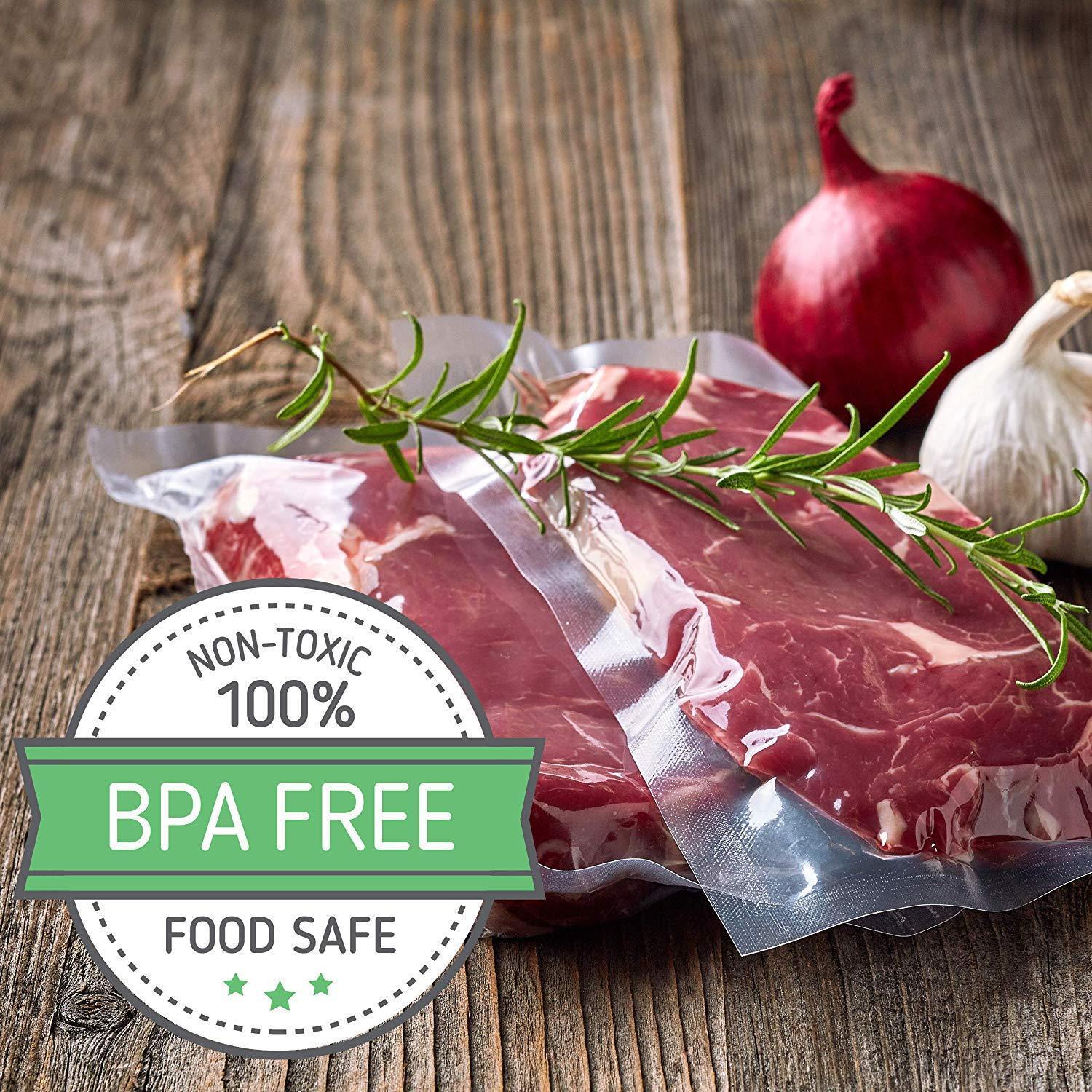 • CONTENTS; Each Pack Contains a Combination of 150 Pre-Cut Vacuum Seal Bags in 3 Sizes; 50 Quart (8"x12" Inch), 50 Gallon (11"x16" Inch) and 50 Pint Bags (6"x10" Inch). All Nutri-Lock Bags and Rolls are BPA Free, Embossed and Have a 3.5Mil Thickness, Making Them Perfect for Home or Commercial Use.