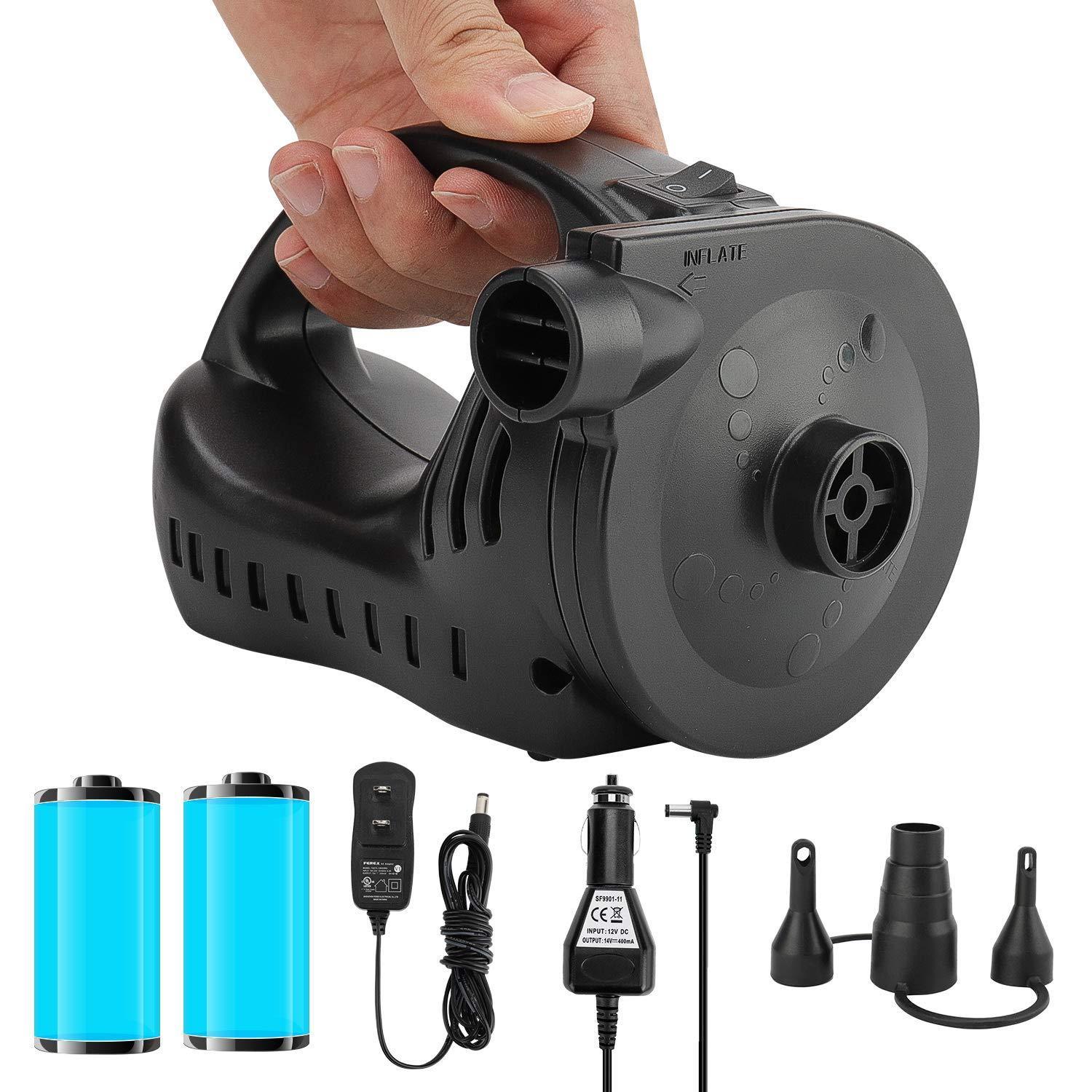 OlarHike Portable Quick-Fill Electric Air Mattress Pump for Pool Floats, Rechargeable Inflator Deflator with 110V AC & 12V DC Adapter, Black