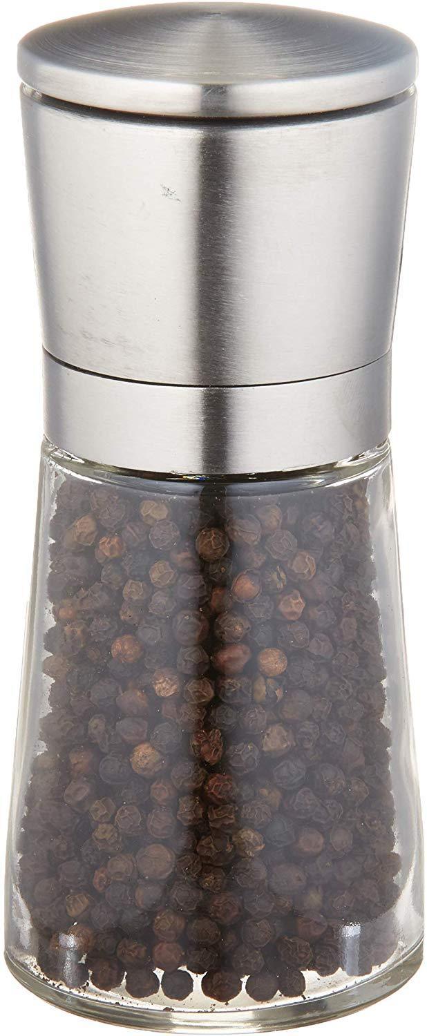 • Constructed from glass with a brushed stainless-steel top; features a carbon steel grinding mechanism