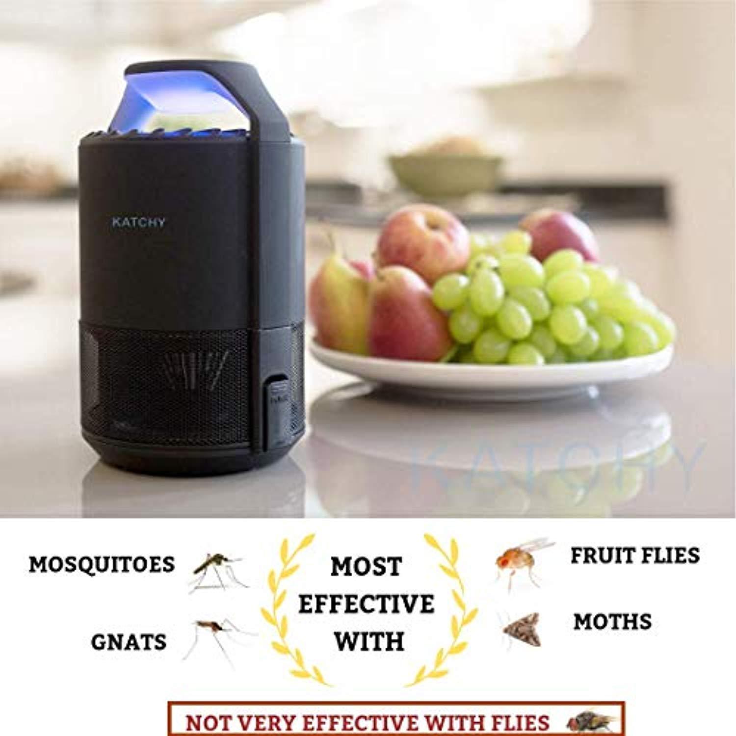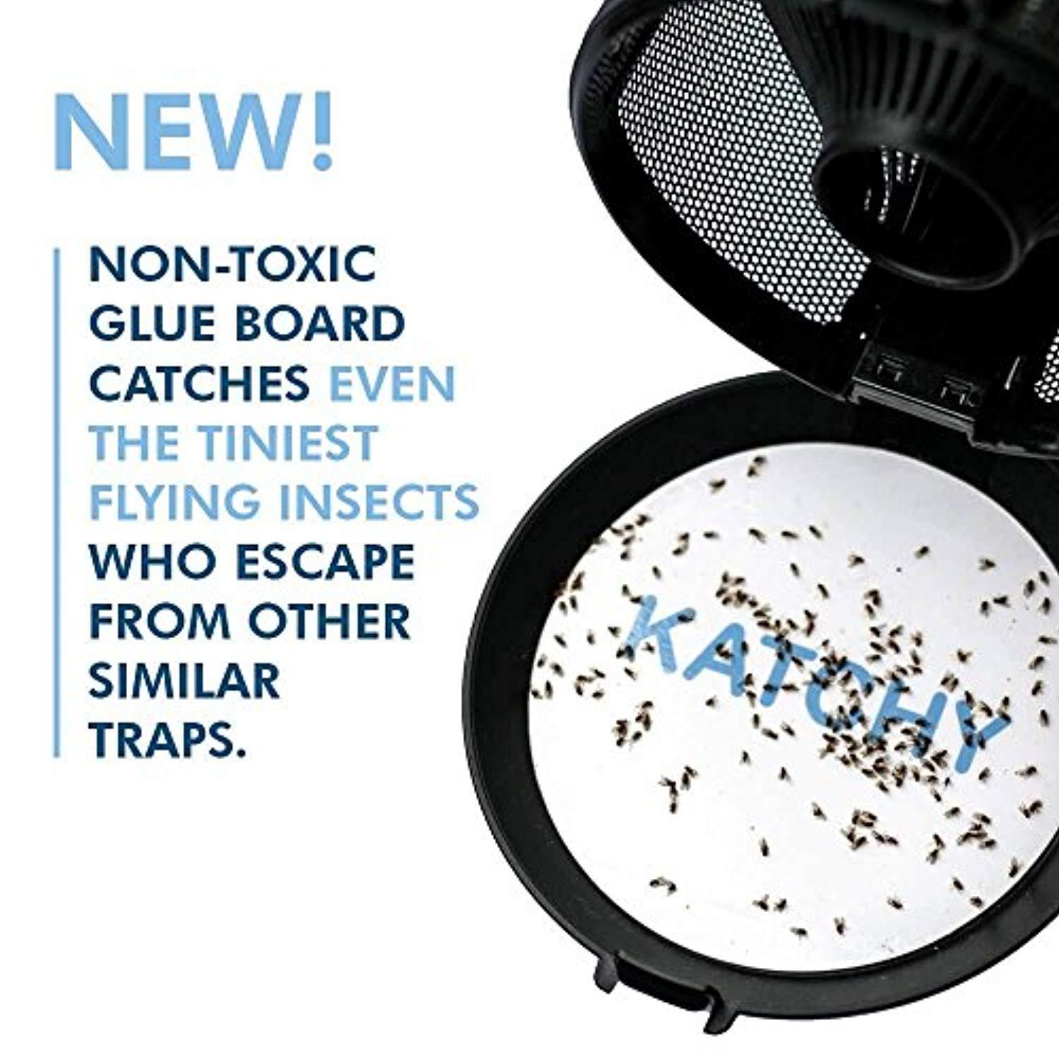 • 🔷 TRIPLE TRAPPING POWER: Works best for catching gnats, fruit flies and mosquitoes. The UV light lures them in, the fan keeps them in and the super sticky glue boards make sure they don't escape. Be warned that the trap is not so effective for house flies - especially with the bigger ones! Other than that KATCHY Black Supernova is the most comprehensive indoor bug trap on the market today!