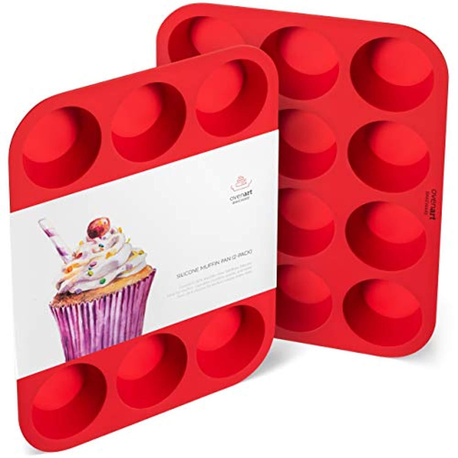 OvenArt Bakeware European LFGB Silicone Muffin Pan, 12-Cup, Red, 2-Pack