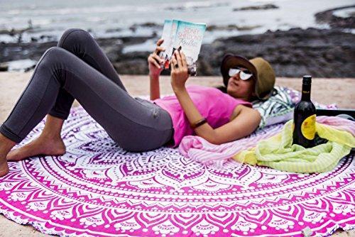 PAGISOFE Magenta Marvel Mandala Round Tapestry Hippie Indian Mandala Beach Blanket or Hippy Bohemian Table Cover or Boho Gypsy Cotton Tablecloth Beach Towel Meditation Round Yoga Mat - 72 Inches, Pink