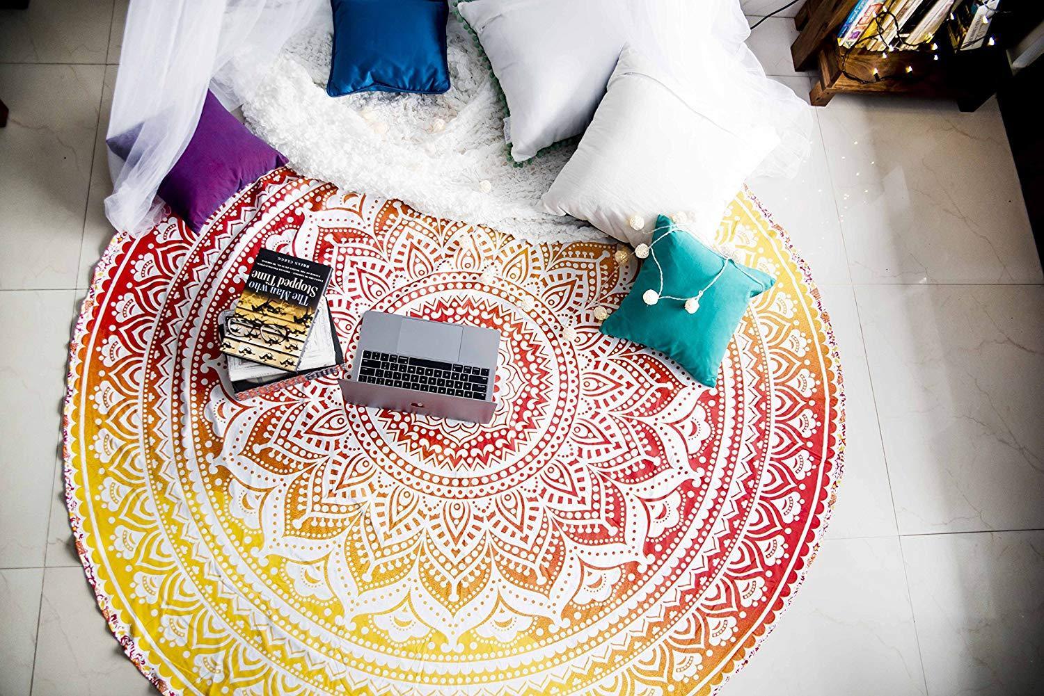• This super versatile, prime and popular large Indian mandala yogamat or vintage round towel tapestry sheet set comes in a pretty gift packing ready to give it as a gift to your friends or family on their birthday, anniversary or friendship day!