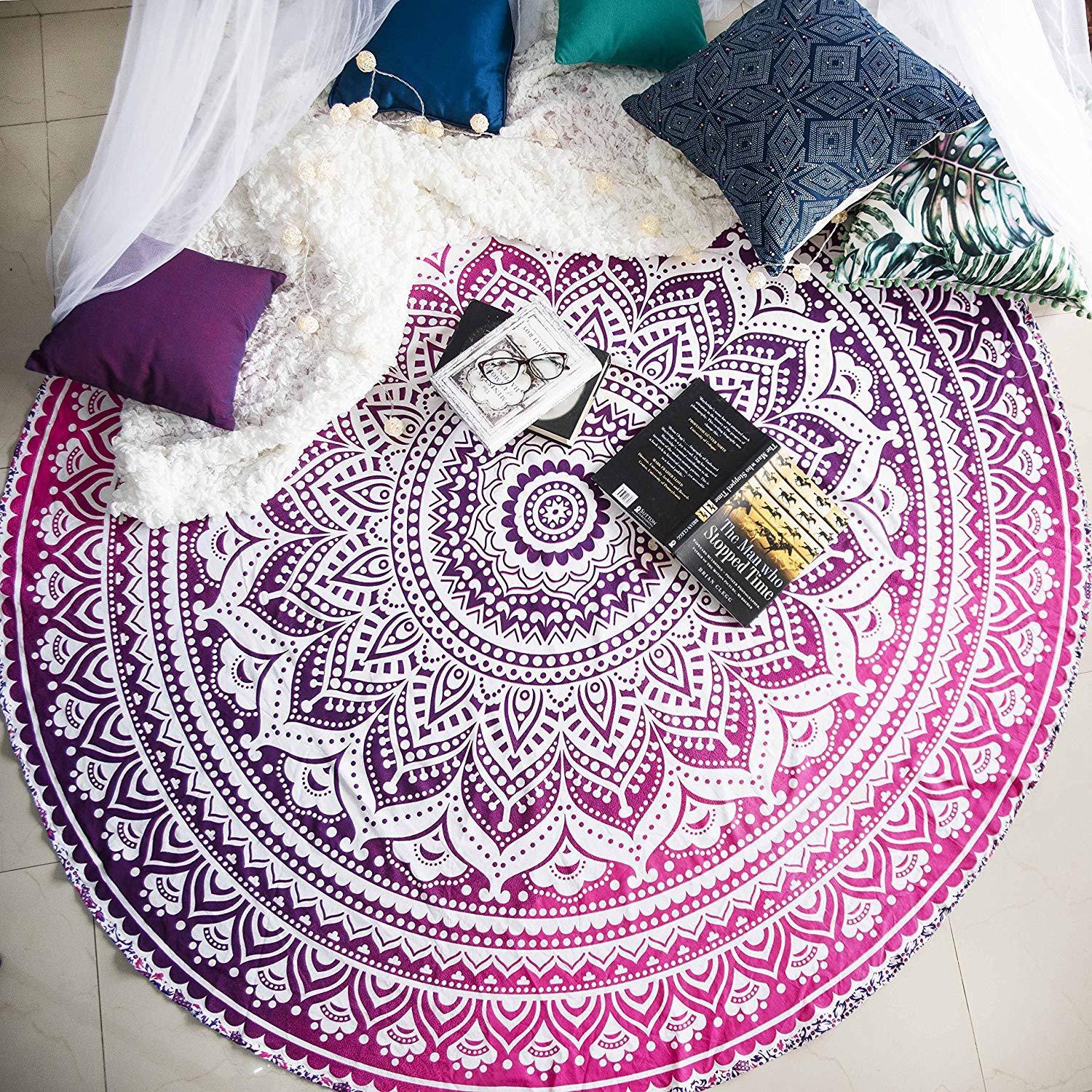 Cotton Imported Folkulture exclusive top quality Magenta Marvel Round Tapestry measures 72 Inches (180 cm) Diameter and...