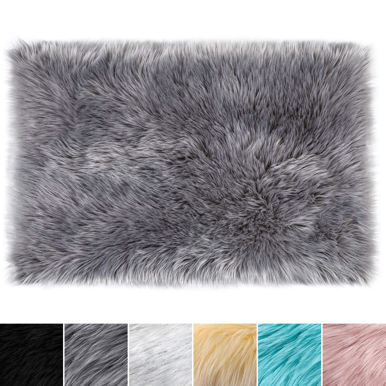 PAGISOFE Soft Faux Sheepskin Fluffy Rugs for Bedroom Kids Room, High Pile Faux Fur Area Rug Bedside Floor Carpet Photography, 3x5 Feet Rectangular Grey