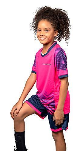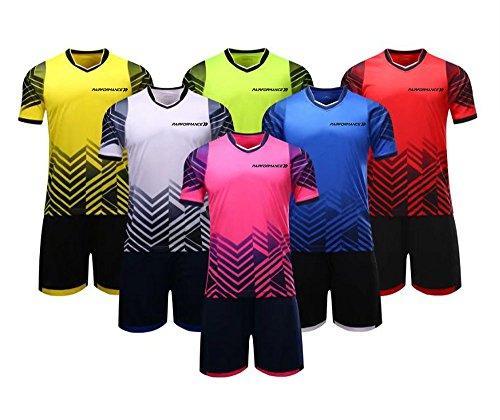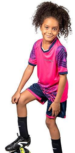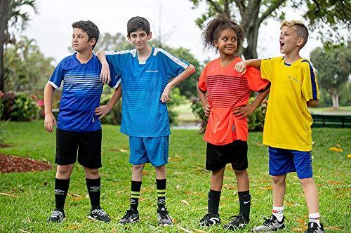 • ⚽ VARIETY OF SIZE AND COLOR - Kids soccer gear for all ages: S will fit your 4-6yo / M is right for 8-10yo / L is perfect for 11-12yo. As one of our 5 star reviewers said: “ A great soccer uniform that fits well”. Colors are Blue, Pink, Red, Yellow, Blue and White. Kids like to play like in the World Cup 🌎 🏆 from home! The right sports & outdoors training boys's outfit.