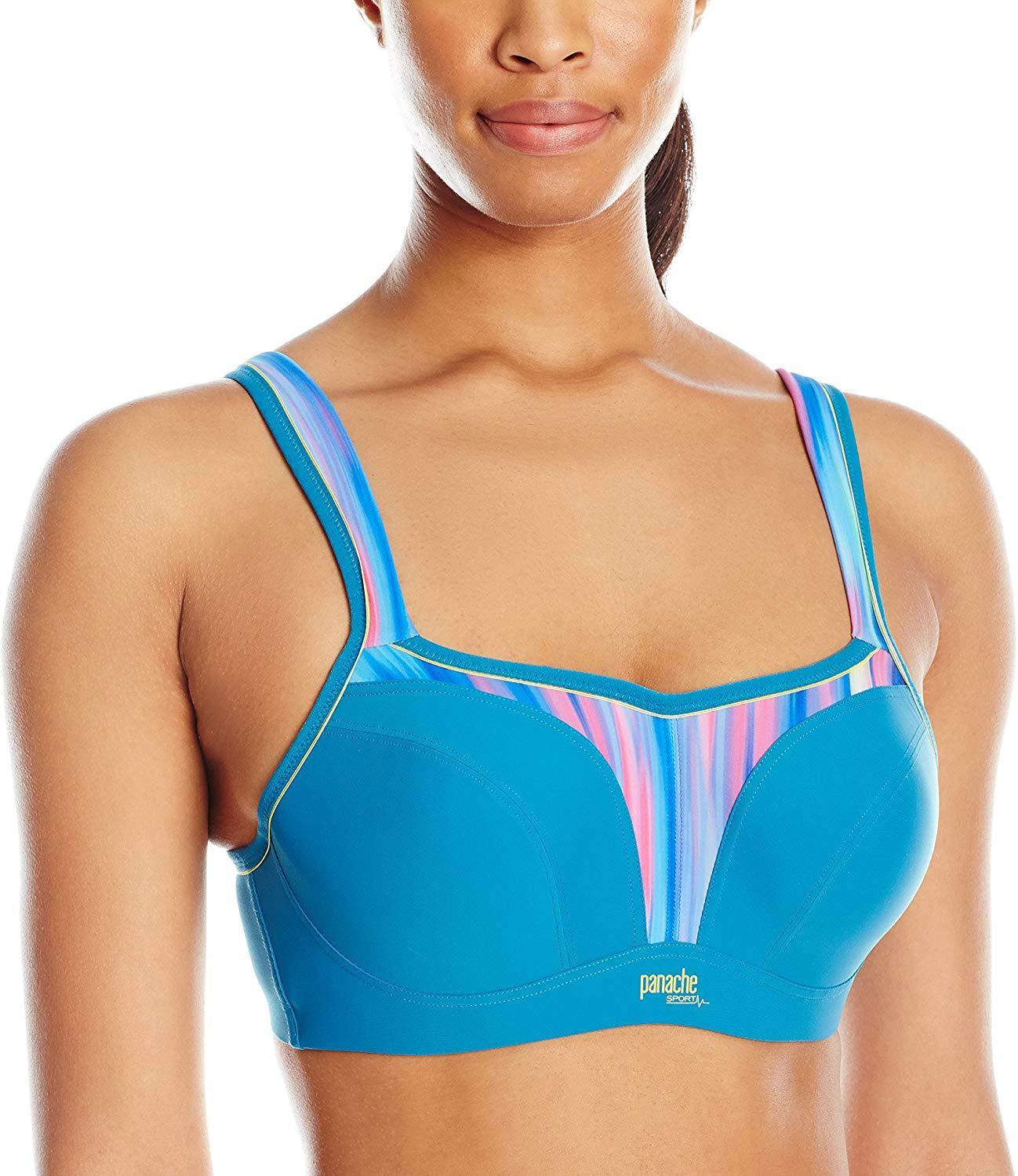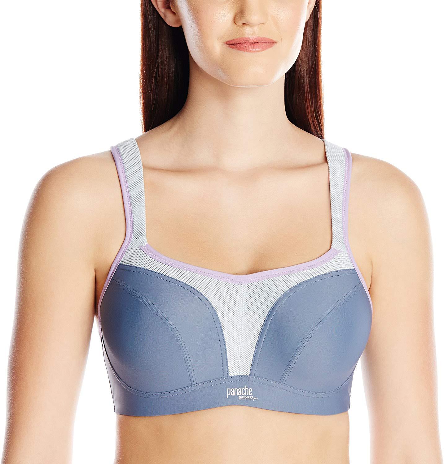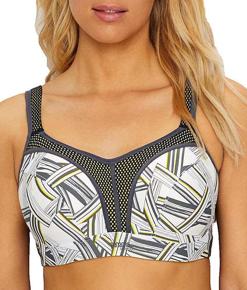 • Underwire sport bra featuring ventilating mesh panels at shoulders and bust
