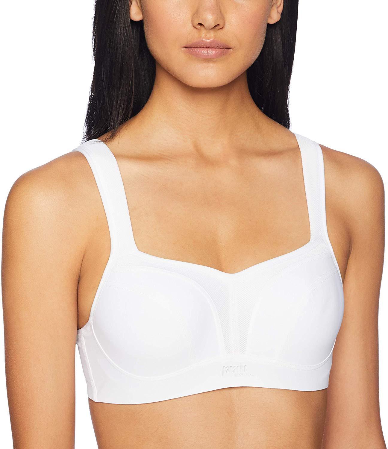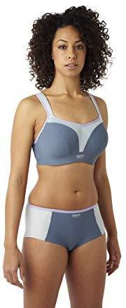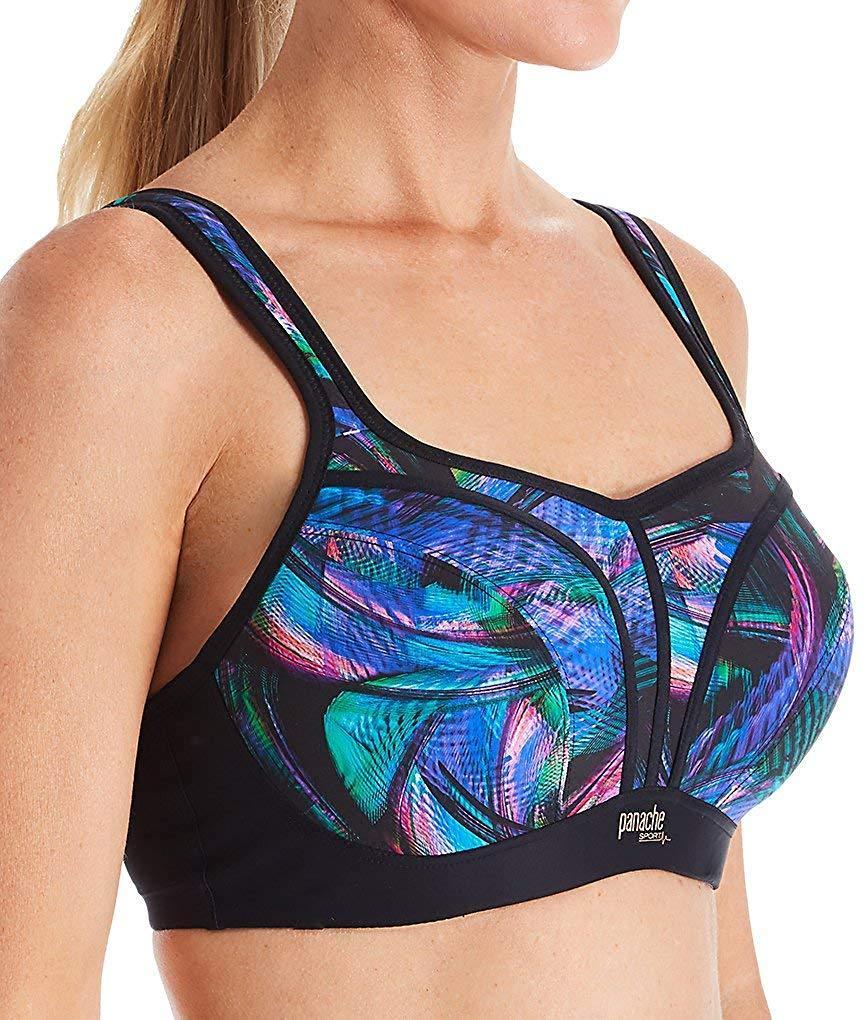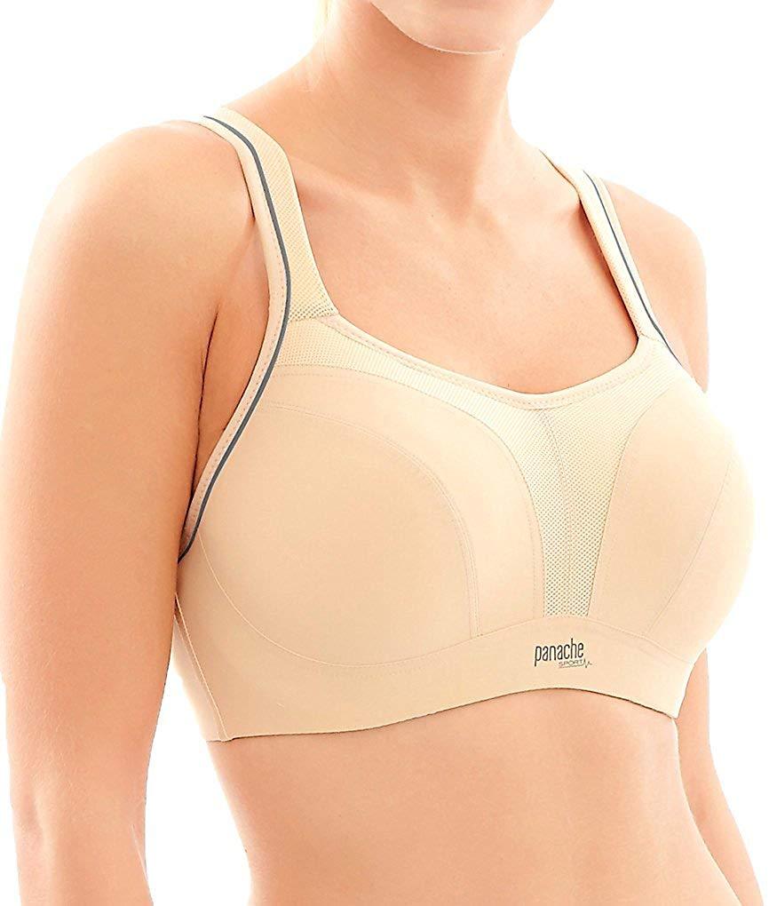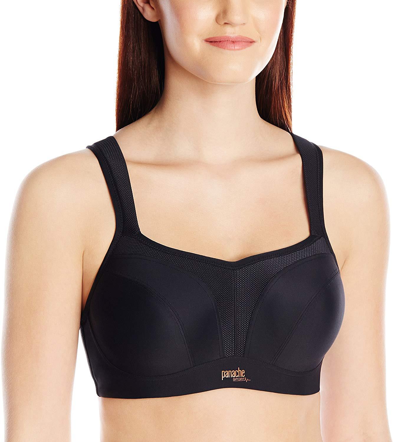 • Underwire sport bra featuring ventilating mesh panels at shoulders and bust