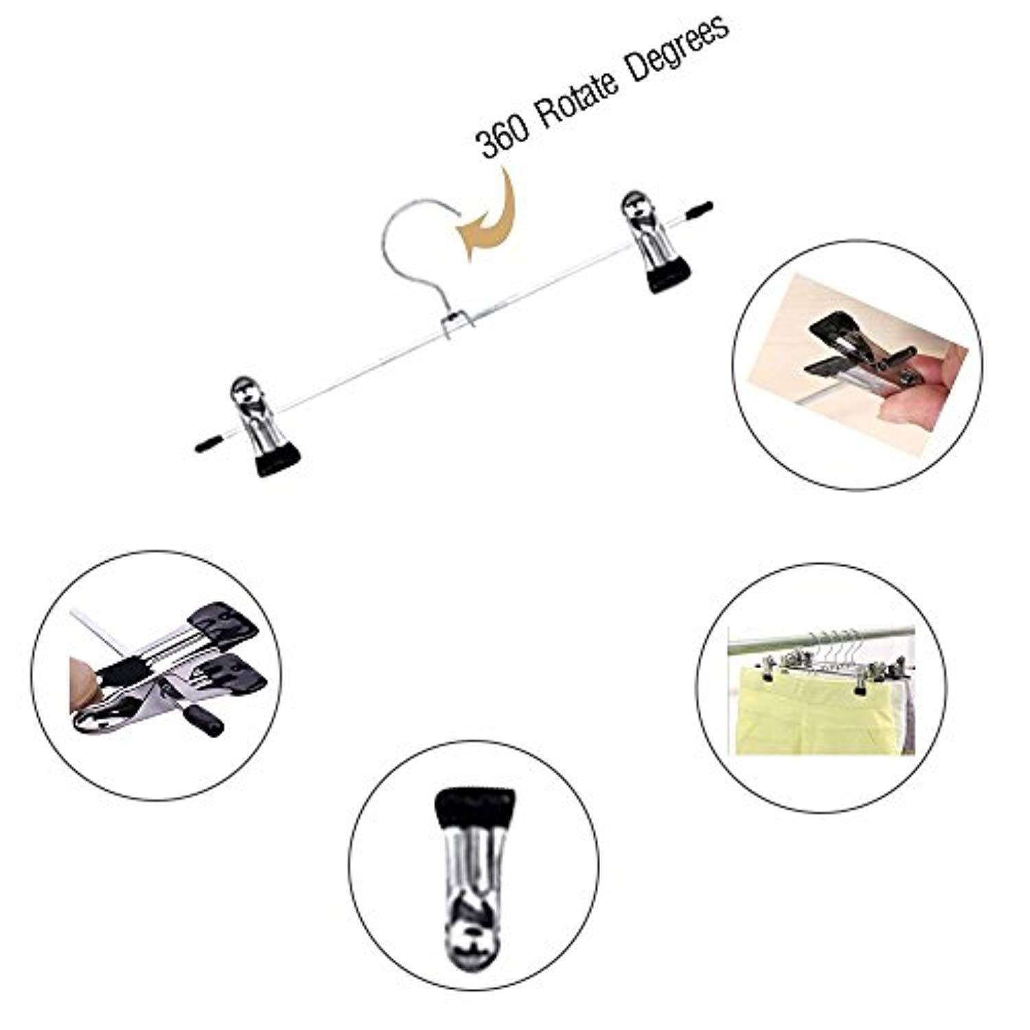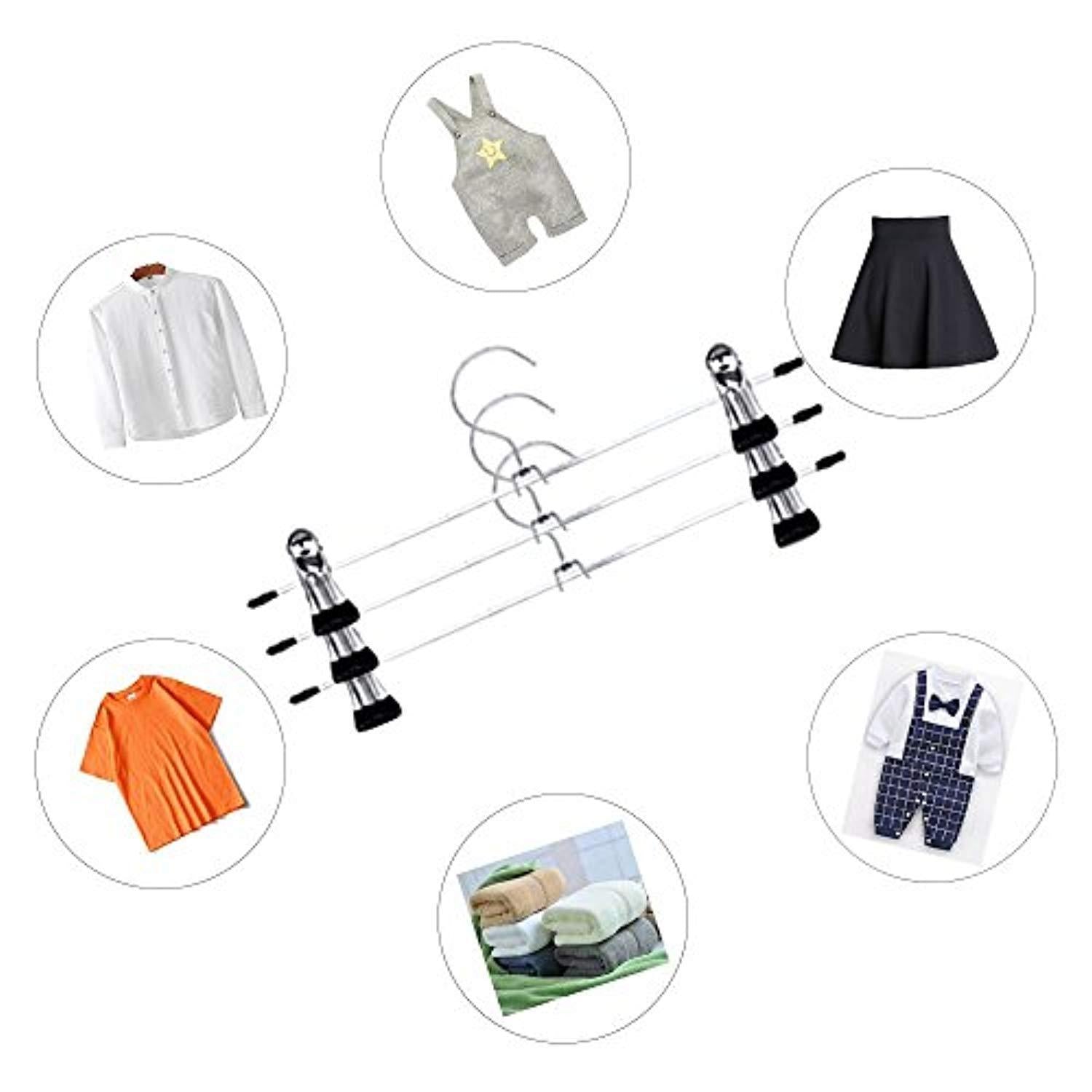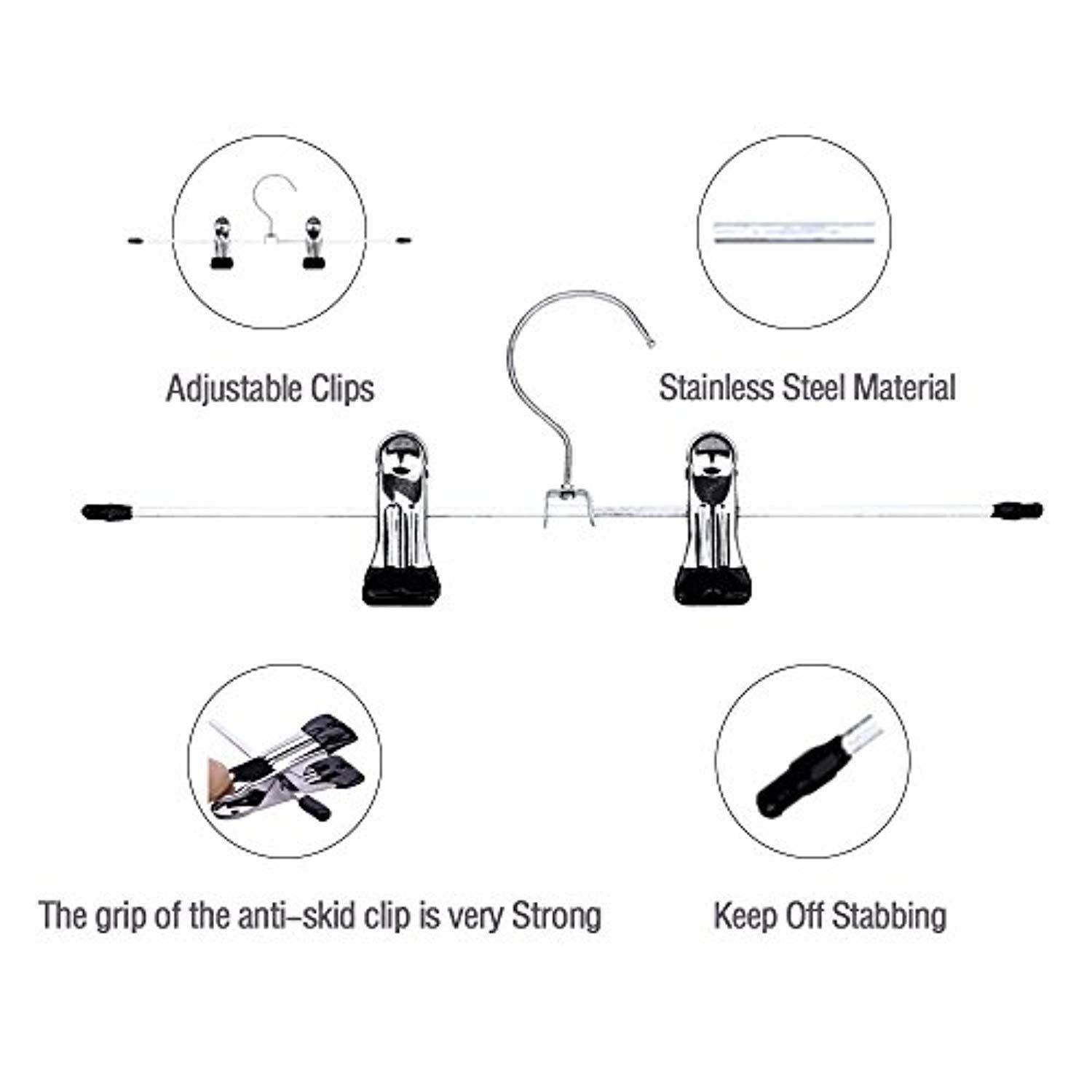 • ✈Pants Clips have a very secure grip and are adjustable across the entire width of the hanger, Skirt Hangers can be moved to fit the size of whatever you want to hang.