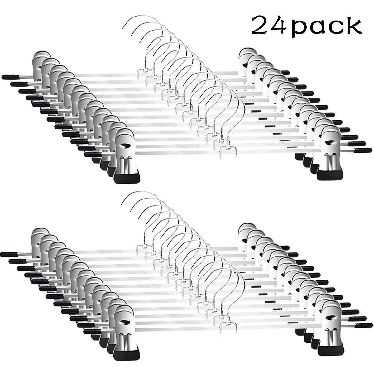Pants Hangers - Skirt Hangers 24 Pack Skirt Metal Pants Hangers Chrome Skirt Hangers with Non-slip Adjustable Clips Space Saving Pants Hanger for All Kinds of Clothes Pants by GoodtoU