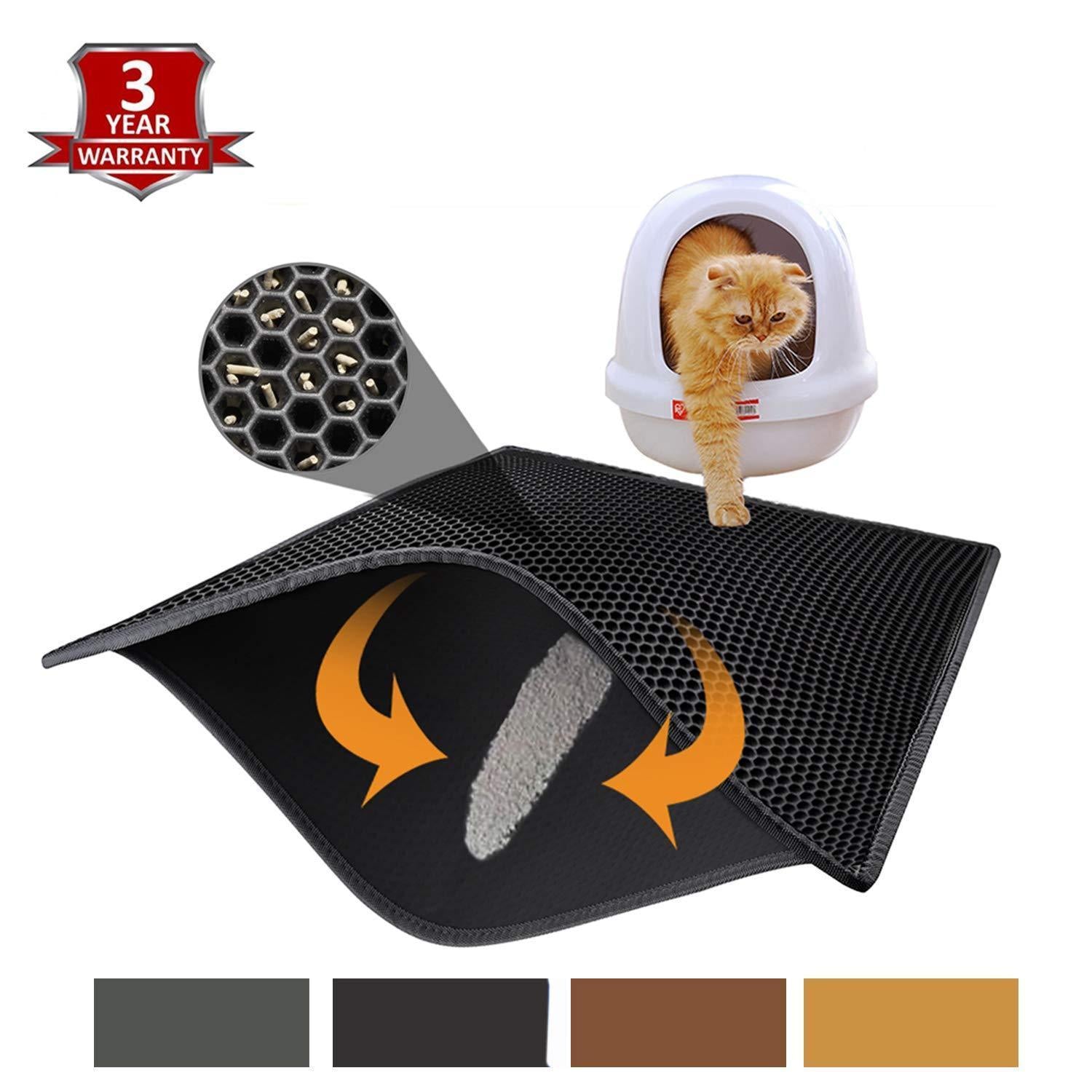 • 😻ANTI TRACKING EZ OPEN EDGE LITTER MAT: Double-layer honeycomb design helps you gather the litter. You just pick up the mat and all the litter falls through and then dump it back in the litter box make it recycling. BEST MAT EVER! No more getting litter stuck to my feet on a daily basis! Large holes is large enough to catch and trap litter. Suitable for lots of type of litter, and kitty litter boxes,hooded,self cleaning litter box.
