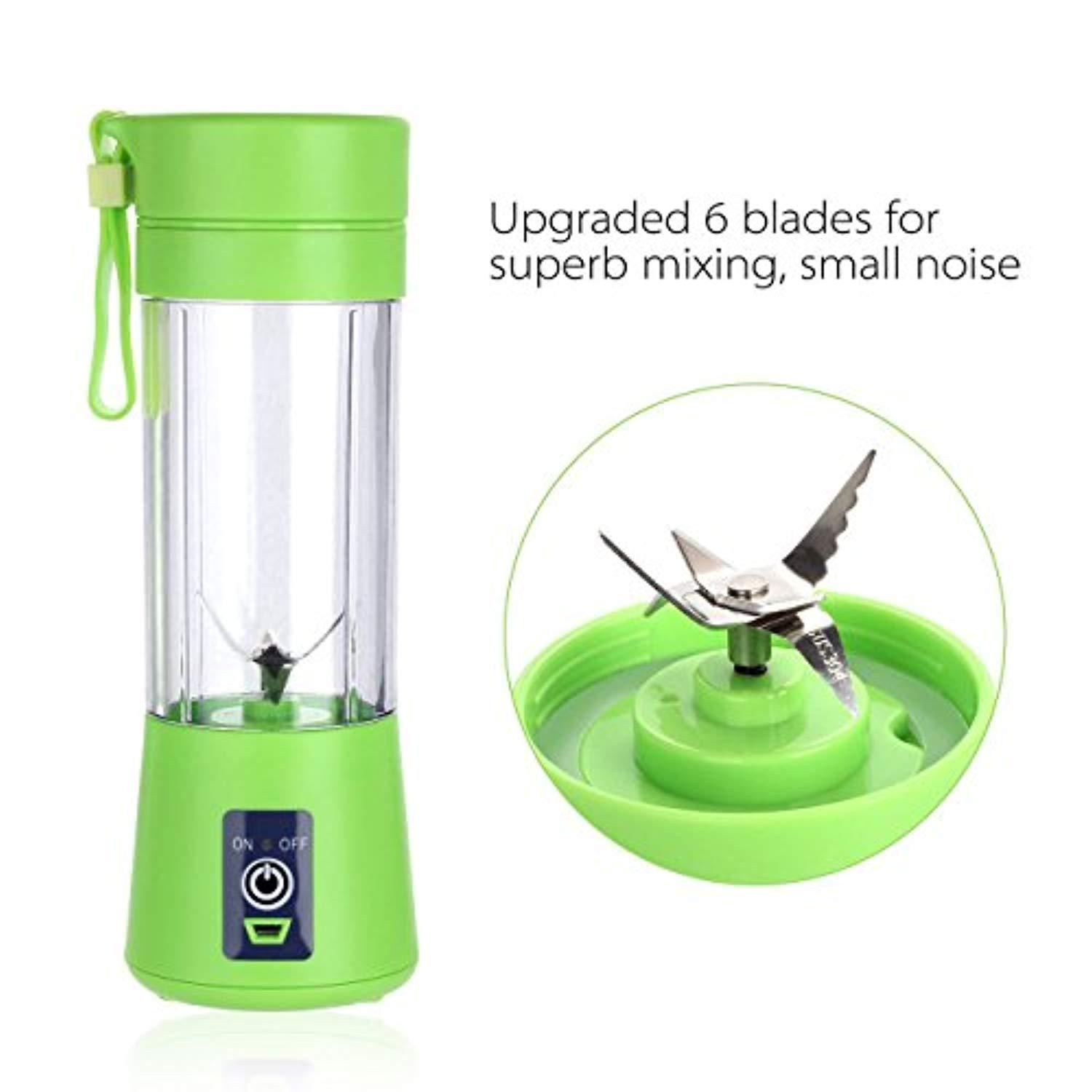 Portable Personal Blender, Household Juicer fruit shake Mixer -Six Blades, 380ml Baby cooking machine with USB Charger Cable (Green)