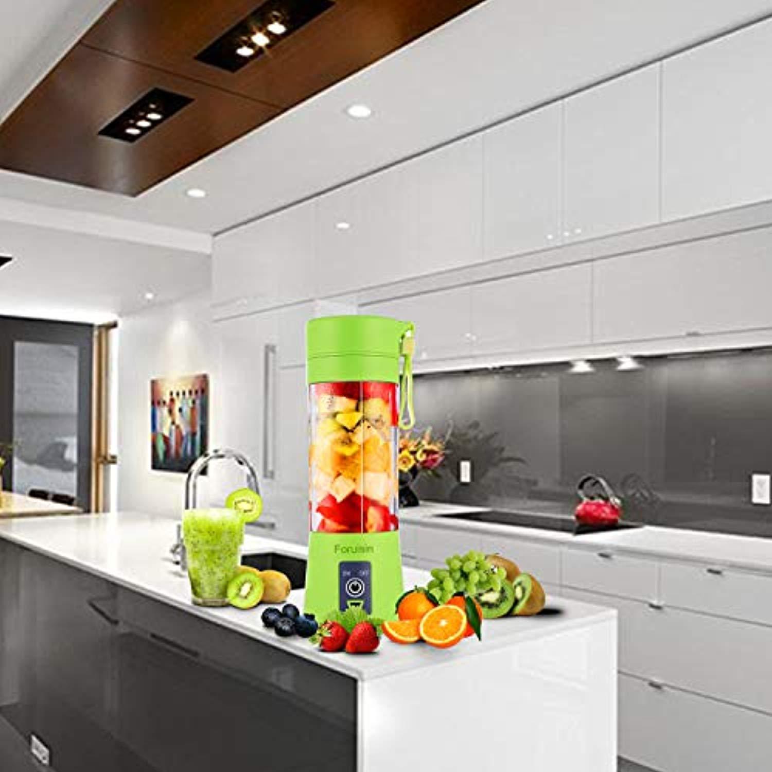 Portable Personal Blender, Household Juicer fruit shake Mixer -Six Blades, 380ml Baby cooking machine with USB Charger Cable (Green)