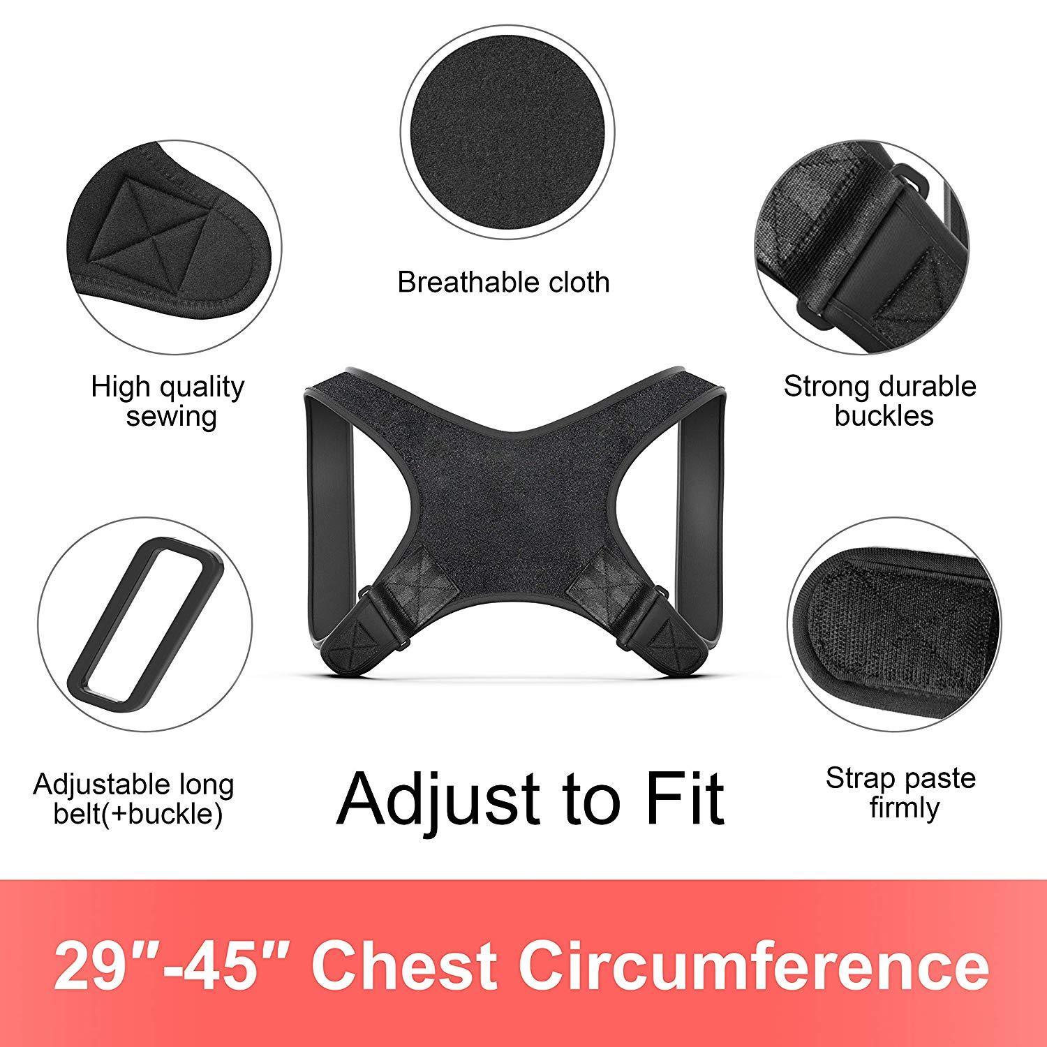 • ADJUSTABLE POSTURE SUPPORT - The corrector back braces has adjustbable straps,making it suitable for teens and adults,both male and female.Fits 29-45’’chest circumference.