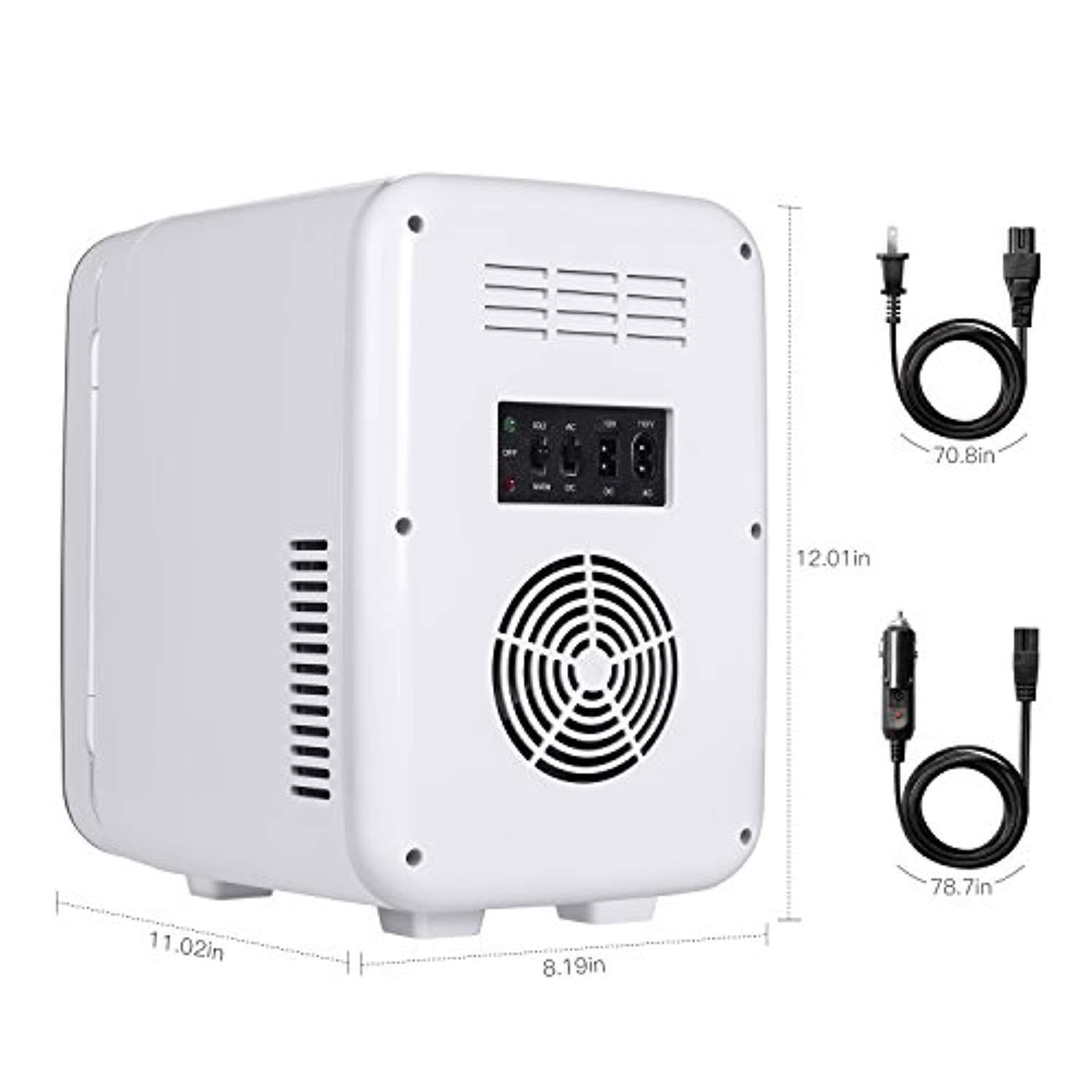 Cooler and Heat mini fridge has the switch from heating to cooling, Cooling Capacity: 64.4ºF below ambient temperature / Warming Capacity: 140ºF-149ºF.When cooling, the green indicator on,when heating,the red indicator on