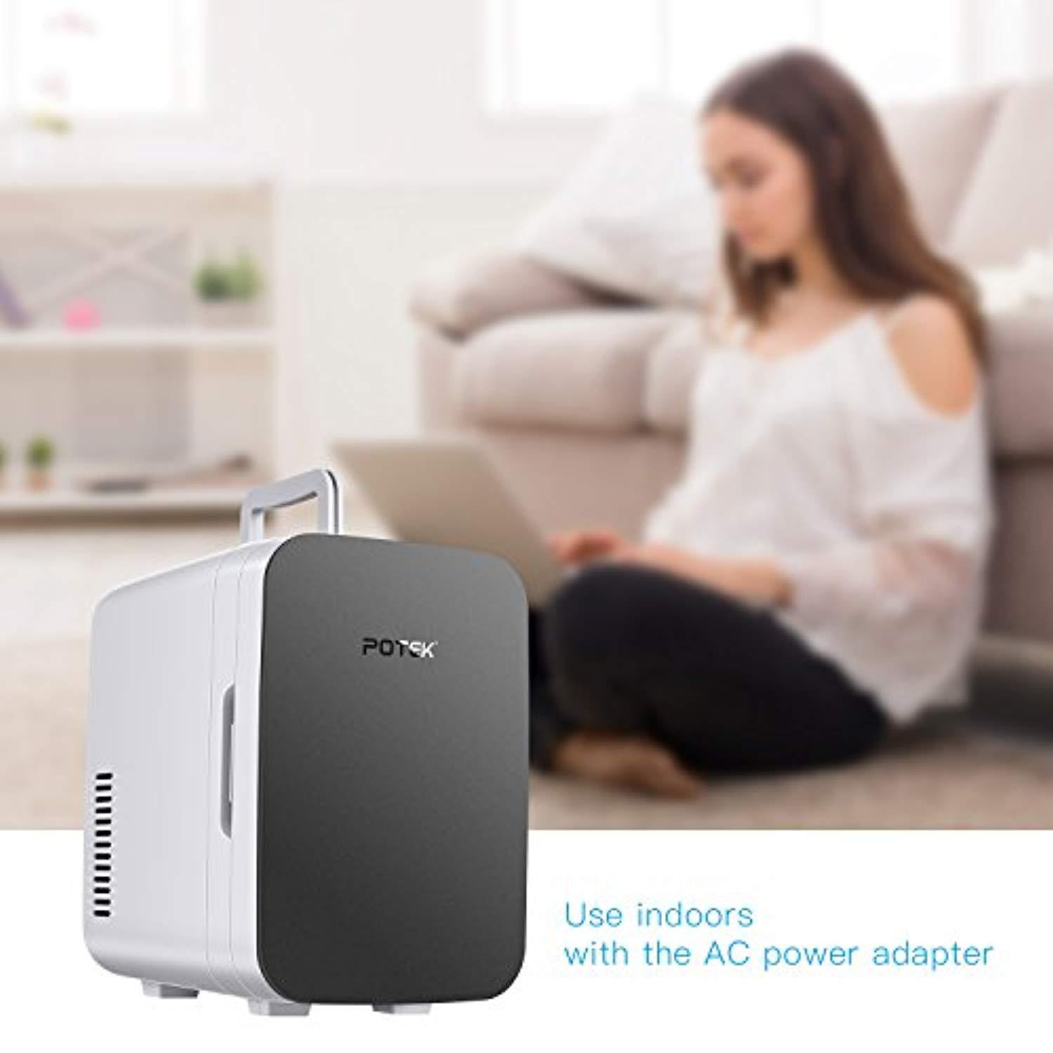 POTEK Mini Fridge Electric Cooler and Warmer (6 Liter / 6 Can) :AC 110V/ DC 12V Portable Thermoelectric System,For Car /Indoor /Outdoor (Silver Grey)