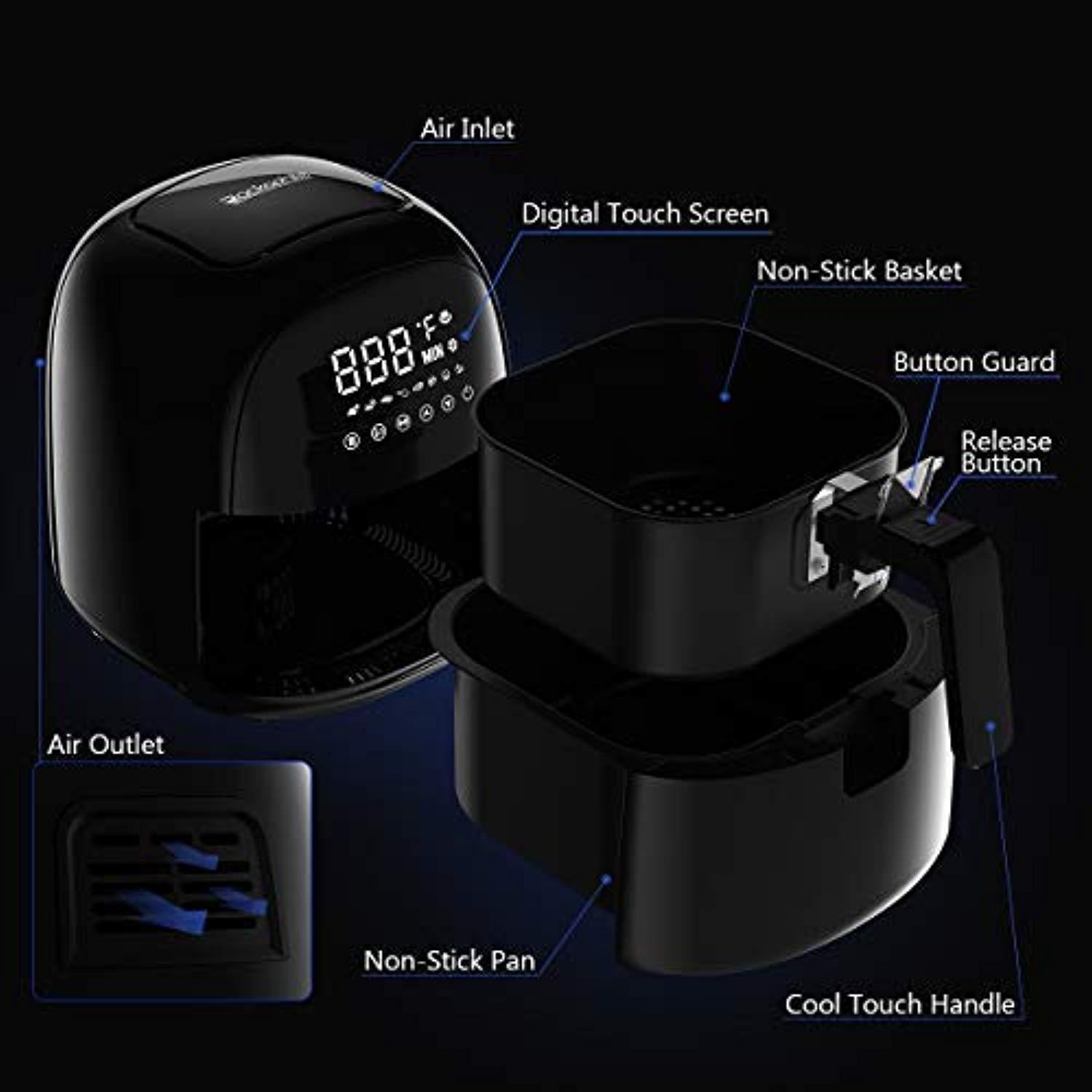 Power Air Fryer Oven, Rackaphile 3.7 Qt Electric Air Fryer XL Airfryer No Oil with Digital LED Touch Screen, 8 Preset Settings, Temperature Timer Control, 360° Rapid Hot Air Technology, Oil-Free and Healthy, for Home Kitchen Meals, Black