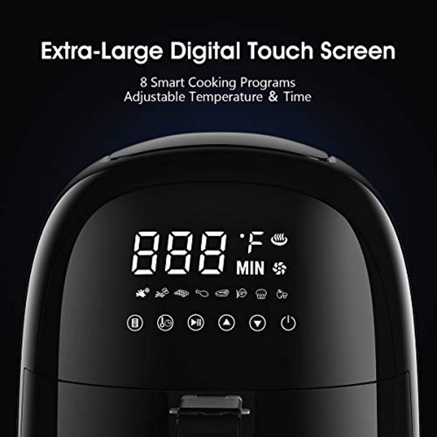 • ★【TAILORED FOR YOU】Extra-large digital LED touch screen allows you to choose from 8 presets for commonly air-fried foods or set your own temperature (from 120ºF to 400ºF) and timer (up to 60 min).