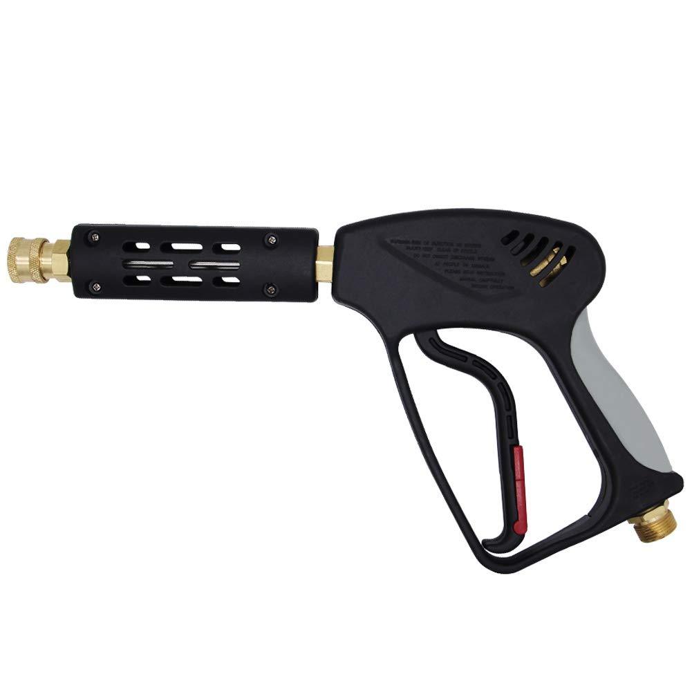 • ATTENTION: NOT FIT GARDEN HOSE or WATER HOSE. 5000 PSI high pressure washer gun body, brass fitting. The gun features a locking safety handle to prevent accidental sprays.