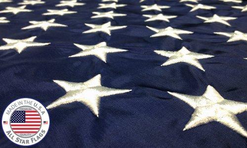• The PREMIUM 3x5' US NYLON FLAG from ALL STAR FLAGS is made 100% in the USA from domestically sourced materials. The FLAG features the FMAA (Flag Manufacturers Association of America) seal as verification that your new flag was made ENTIRELY in the USA.