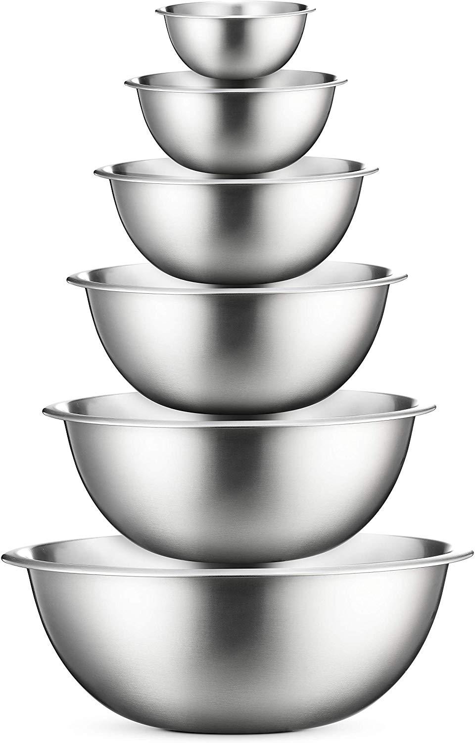 • SIZED for EVERY TASKS - with range of 6-Sizes ¾, 1.5, 3, 4, 5 and 8 quart metal mixing bowls adds versatility and functionality to your kitchen, for all-purpose kitchen workhorses from prepping, mixing, stirring, to kneading dough like a pro.