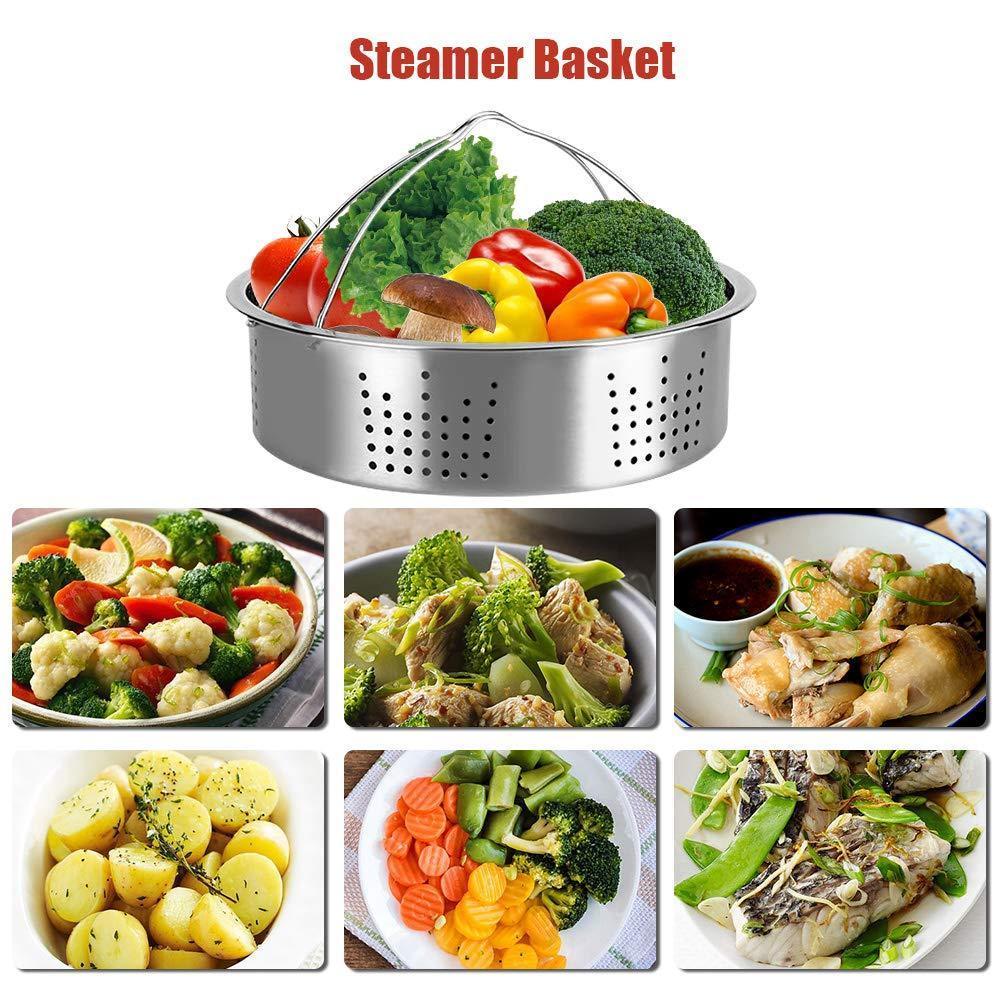 • Handy & Useful Accessory Kit: Springform Pan and the Steamer Basket are both made to fit for 6/8 Qt Instant Pot Pressure Cookers inserts. Steam rack can use to steamed vegetables. With the 7” Springform pan, you are able to make the delicious cheese cake for all your families. The silicone egg bites molds with 8.25'' diameter can be widely use for Starbucks-style sous vide egg bites and the Instant pot trivet egg rack allows you to steam 7 eggs at one time.