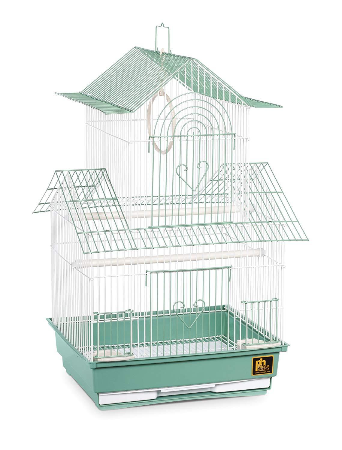 Decorative peak styled roofline Includes two cups, two perches and one swing Ideal for parakeets, canaries and...