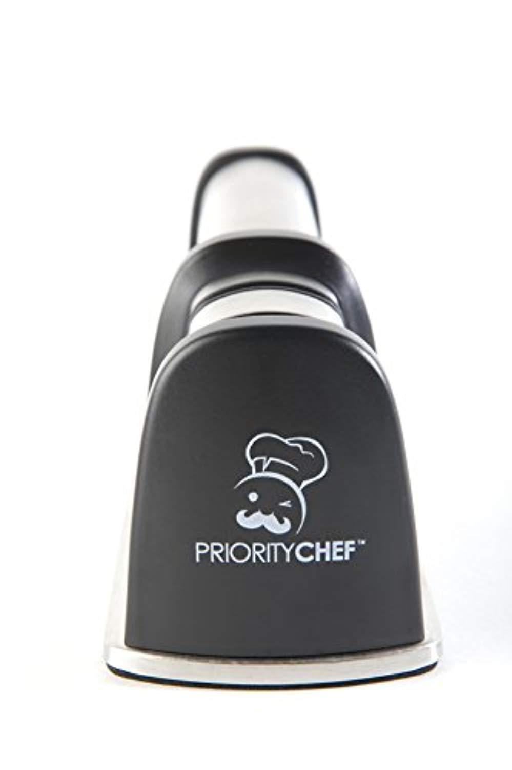 PriorityChef Knife Sharpener for Straight and Serrated Knives, 2-Stage Diamond Coated Wheel System, Sharpens Dull Knives Quickly, Safe and Easy to Use