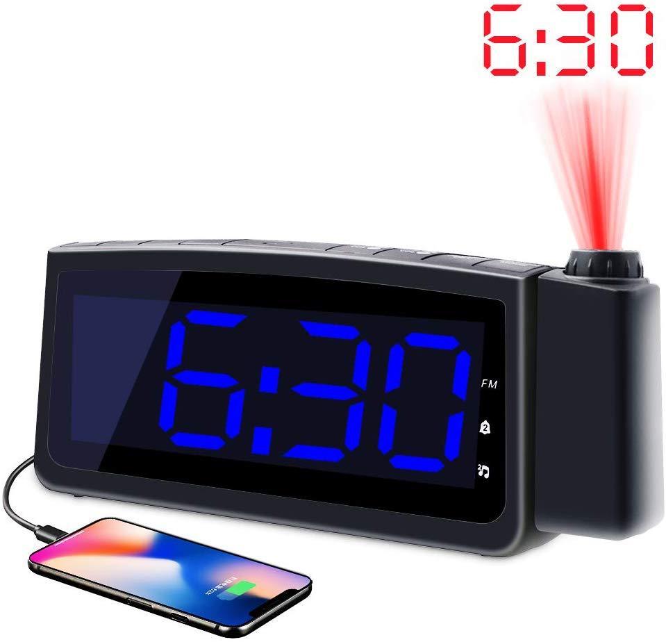• ✅ [USB Charging port & Backup Memory Battery] –The USB output from the projection clocks allow you to charge any smartphones easily.You don’t have to set alarm times every change. The digital clock can remember the time setting once the clock was power chargerd. AC powered for functions of radio, alarm and time display, battery powered ensures the memory of all settings.