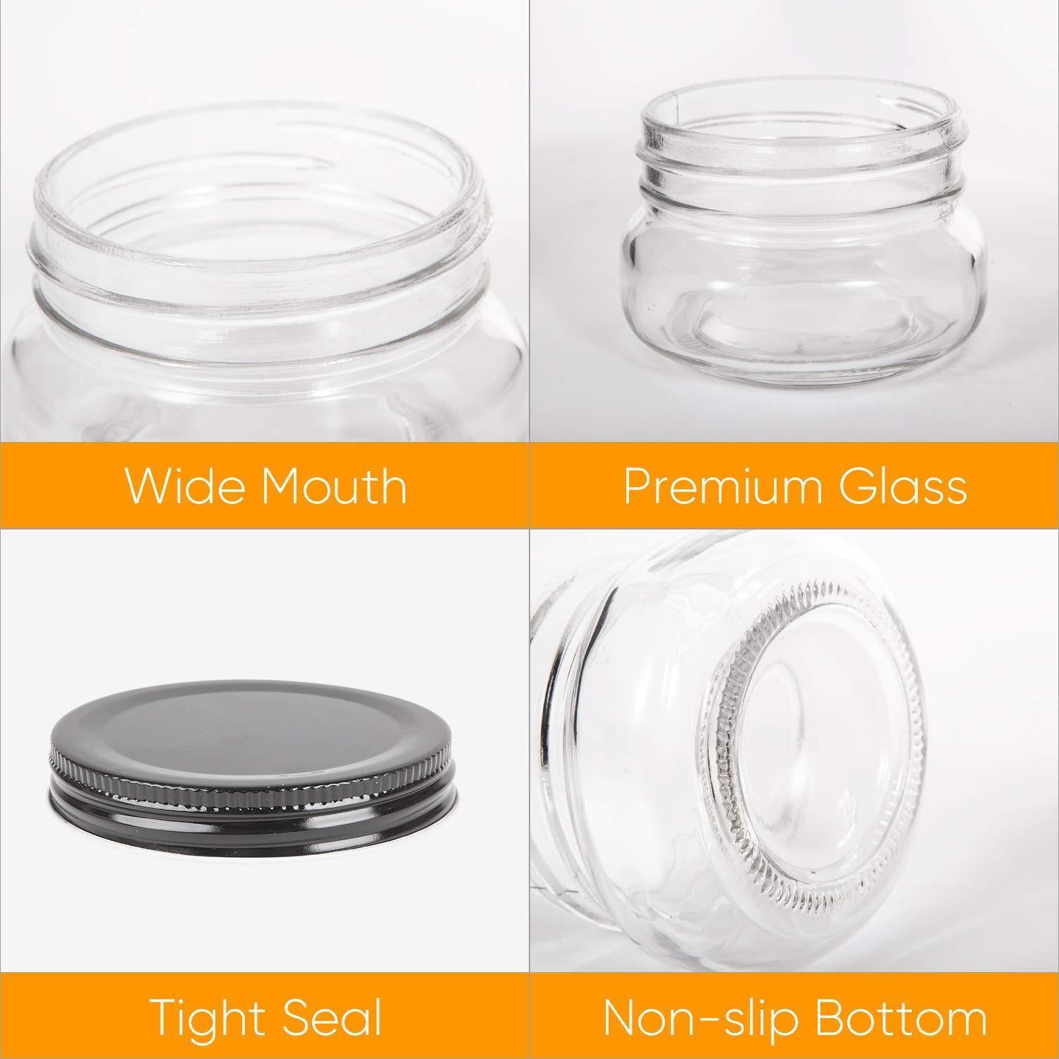 • ▶VERSATILE & MULTIPURPOSE:Ideal for jam or jelly,spices,herbs,powders,deserts,honey,baby food,wedding favors,party favors,cosmetics or candles making and homemade gifts,perfect for kitchen,living room,bath and any occasion!excellent as a gift set too, elegant, functional & decorative.