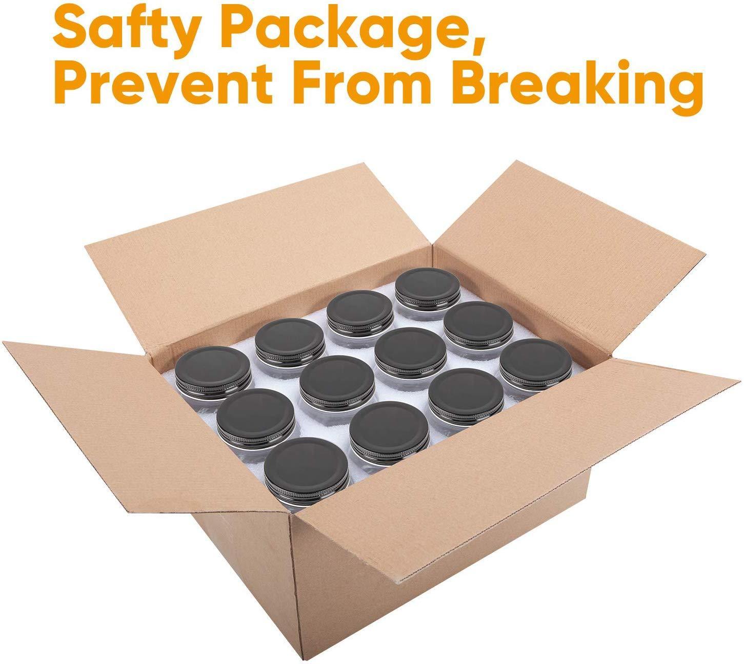 ▶SET INCLUDE:Case of 40 mason jars and black lids,5 oz, 3"base x mouth width 2.56" x height...