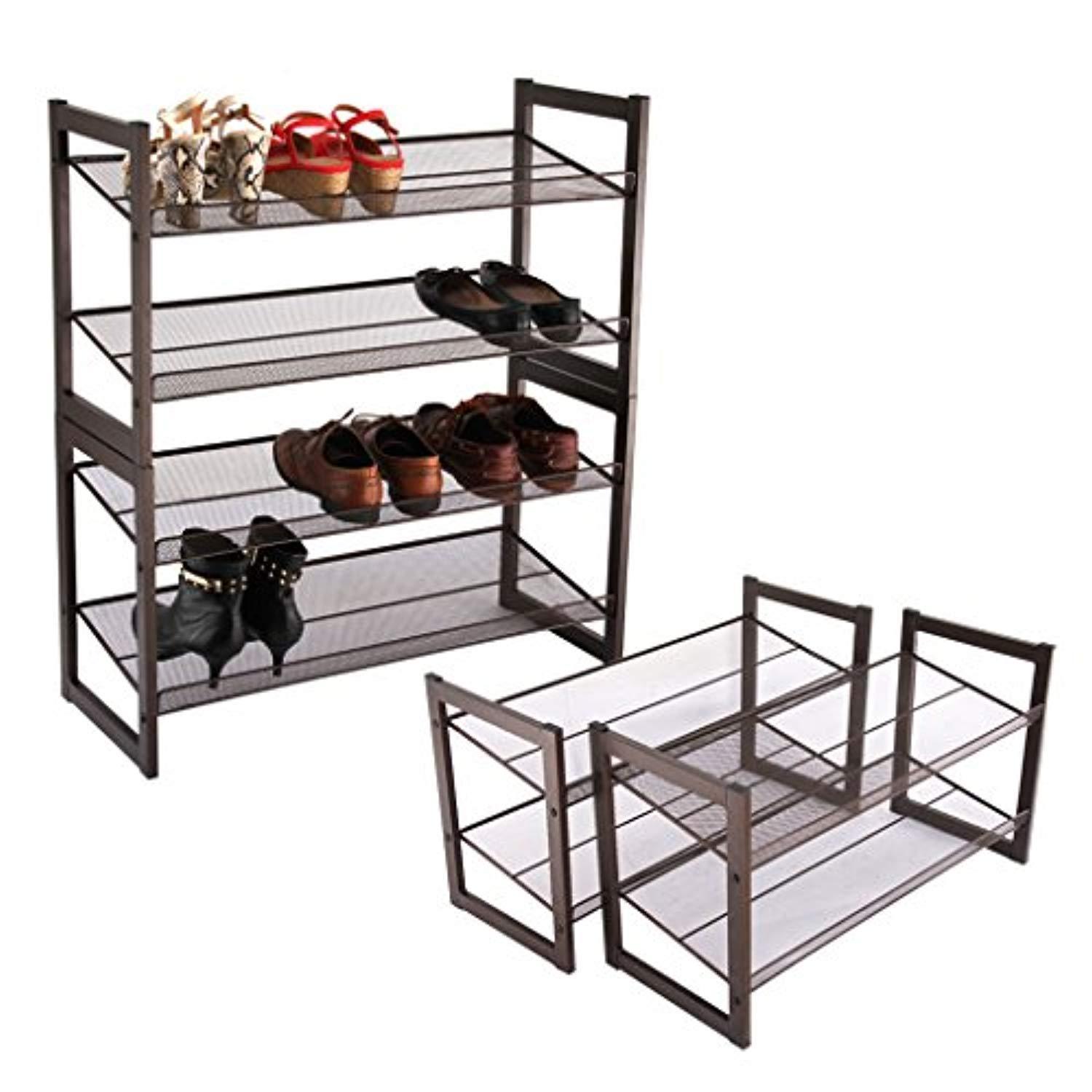 • Dimensions 28.9-Inch L by 12-Inch W by 32.3-Inch H, Consists of two 2-tier shoe racks stacked vertically.