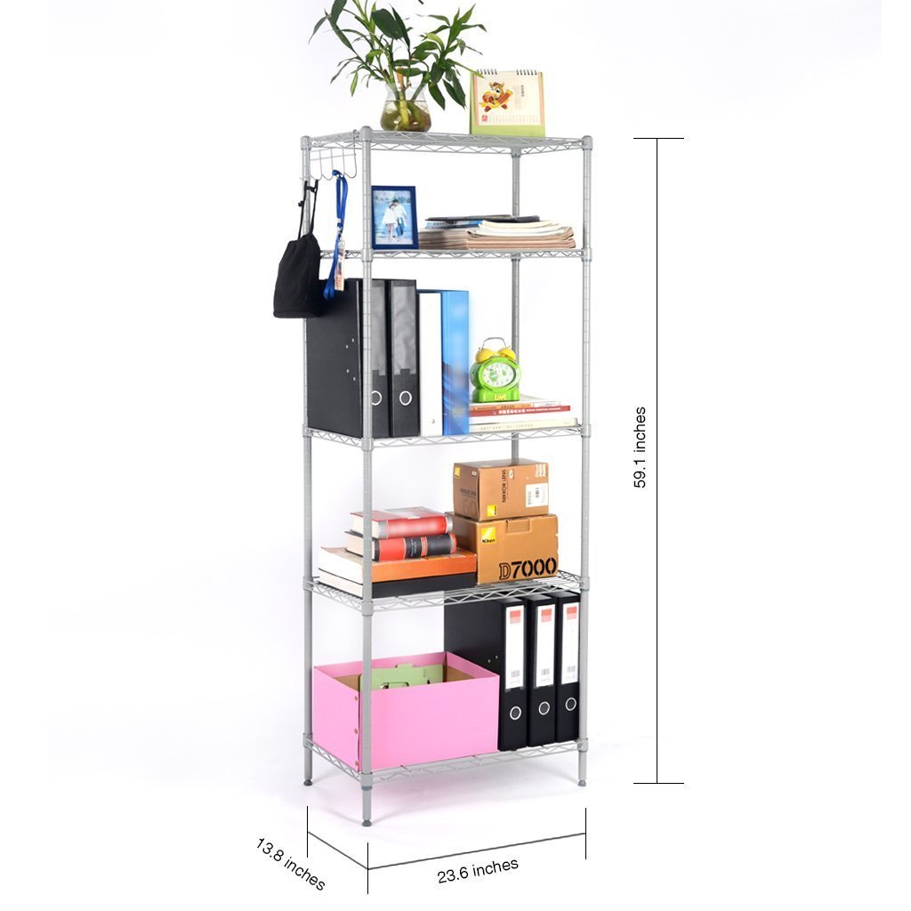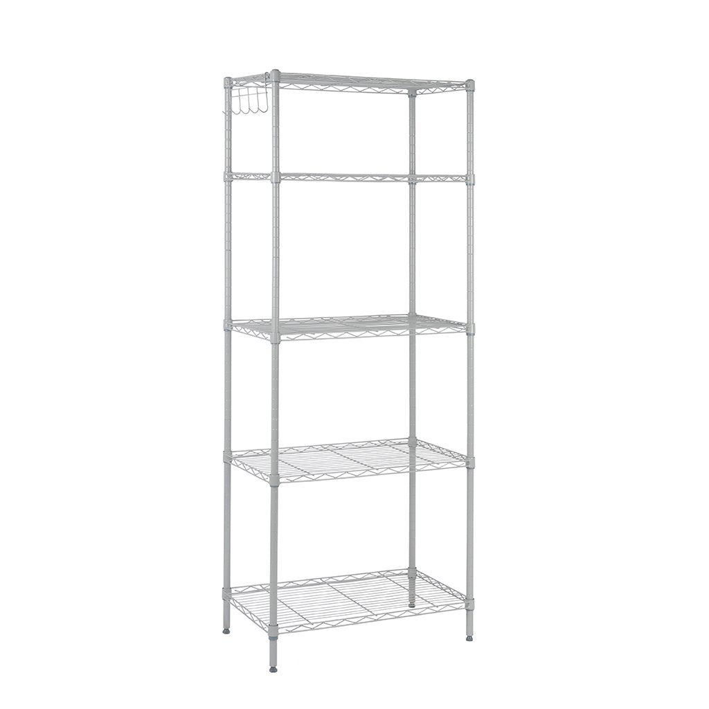 Rackaphile 5-Tier Classic Wire Storage Rack Organizer Kitchen Shelving Unit, Silver Grey
