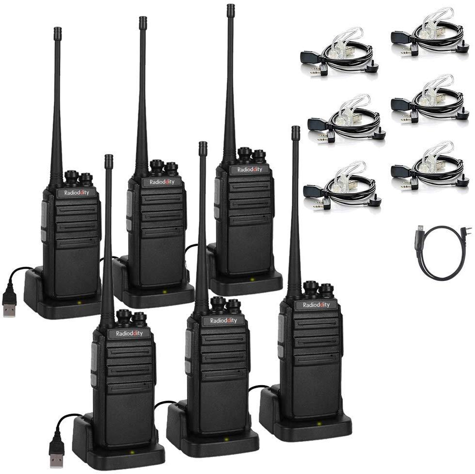 Radioddity GA-2S Long Range Walkie Talkies UHF Two Way Radio for Hunting/Fishing/Camping/Security with Micro USB Charging + Air Acoustic Earpiece with Mic + 1 Programming Cable (6 Pack)