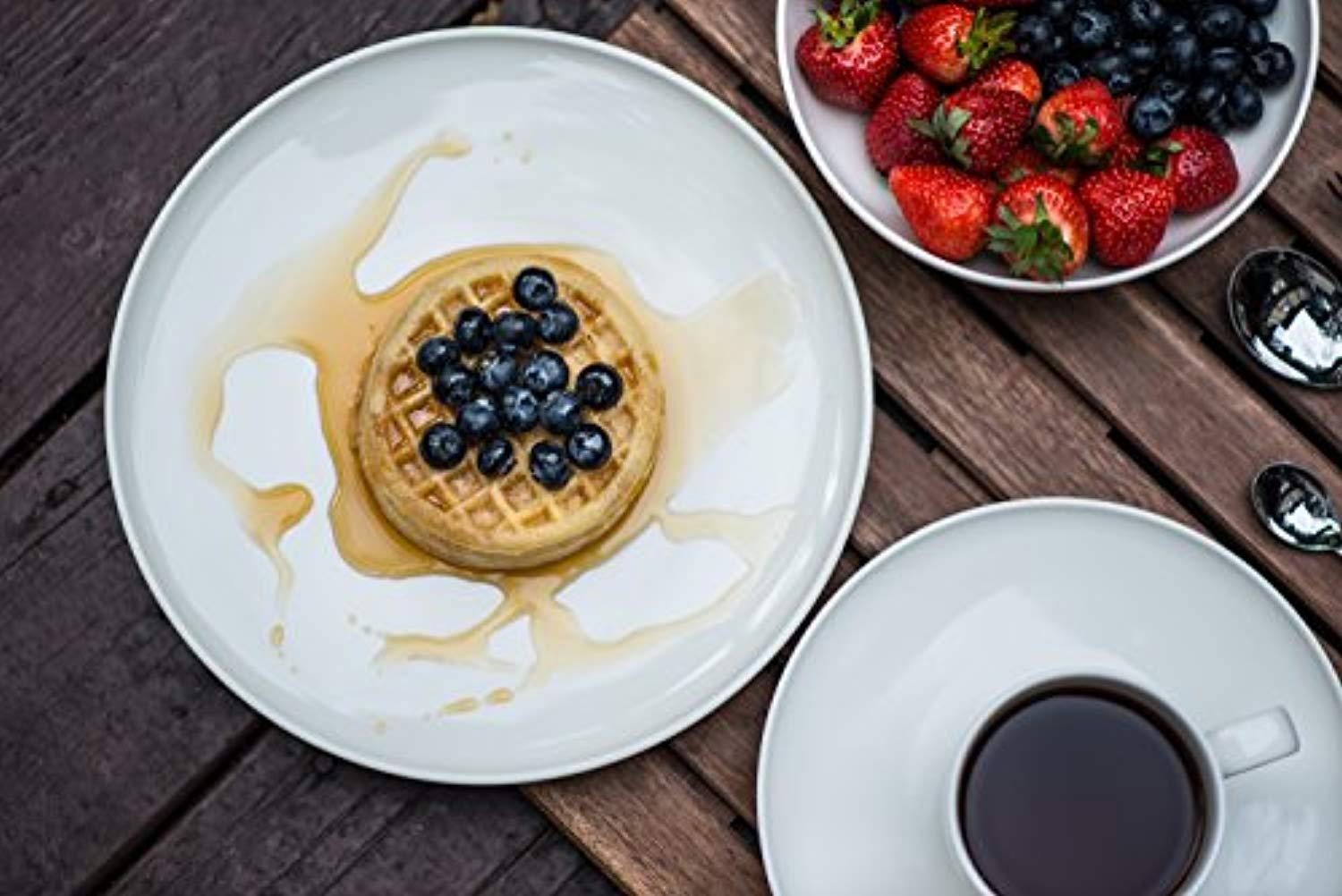 Includes 6 Dinner Plates Dishwasher - Microwave - Warm Oven Safe Simple shapes and a creamy white...