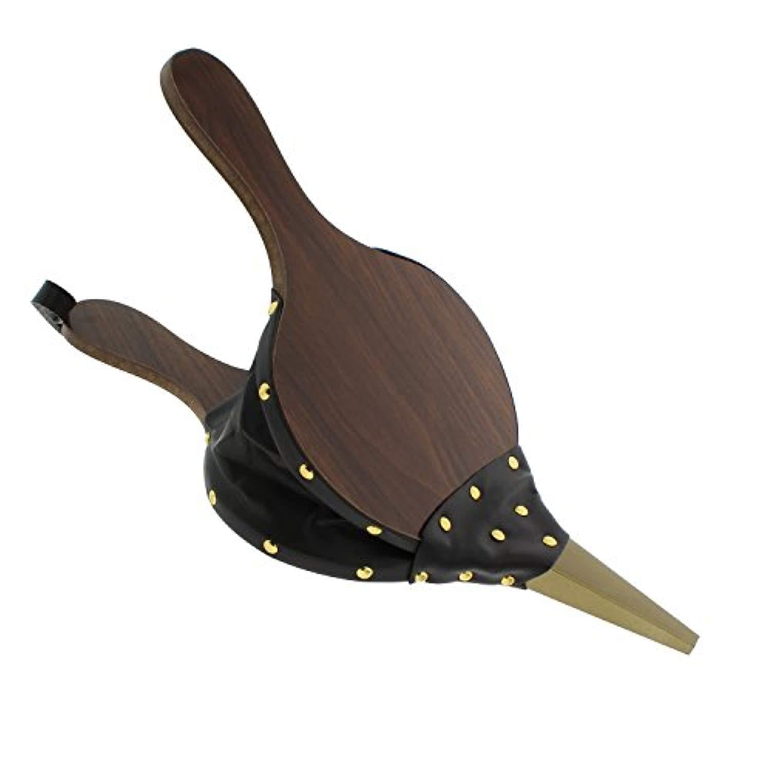 • BUILT TO LAST: Constructed from sturdy wood panels and synthetic leather accordion attached to the panels with metal rivets; All hardware is metal – no plastic parts that could melt when exposed to heat; 15.75” x 1” x 7” inch (40cm x 2.5cm x 17.8cm) overall dimensions with 5-inch (12.7cm) handle, 8-inch (20.3cm) accordion, 3-inch (7.6cm) nozzle with 1/2-inch (1.3cm) nozzle circumference