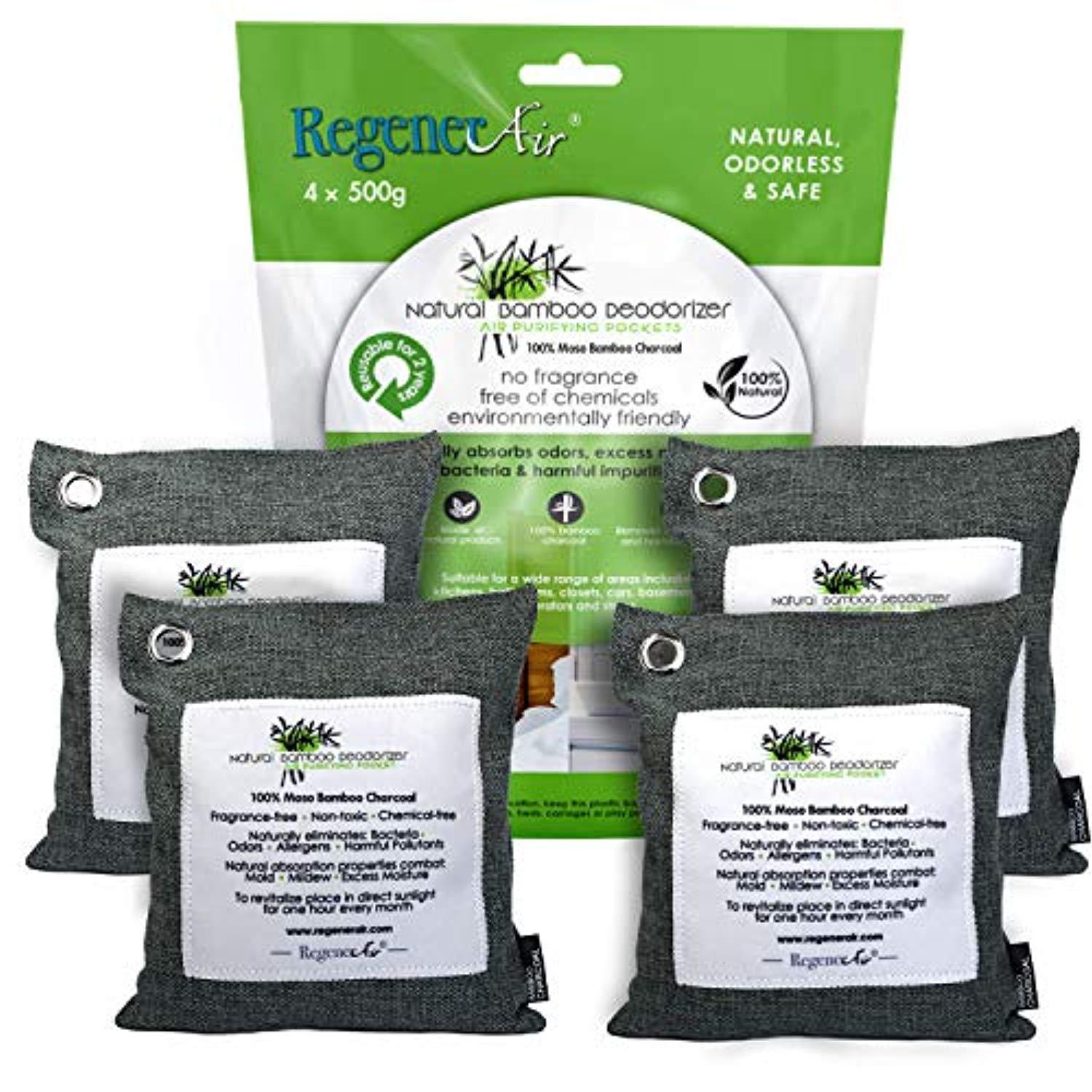 Regenerair Natural Bamboo Air Purifying Bags 100% Moso 4 x 200g Odor Eliminator for Cars Kitchens Closets Bathrooms Pet Areas Charcoal Color