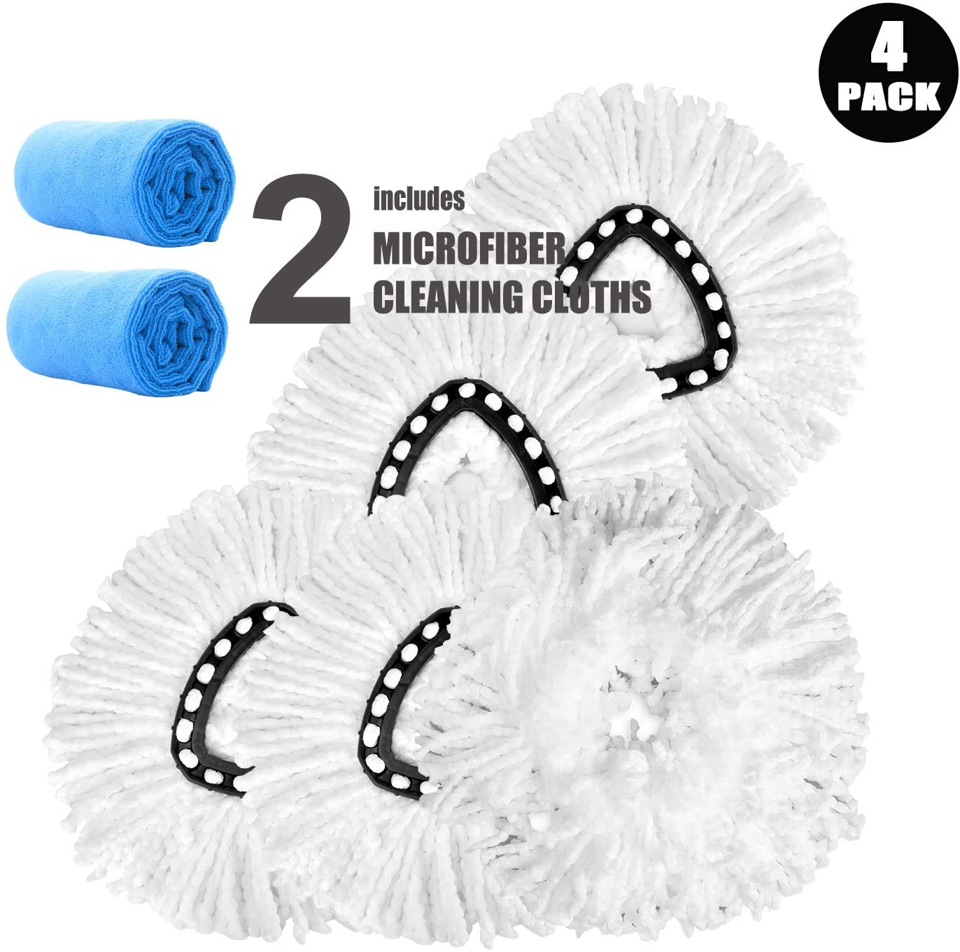 • 【EASY TO CLEAN】 2 Pack Spin Mop Refill Replacement Mopping Heads Easy Cleaning. These microfiber spin mop head replacements use deep-cleaning microfiber to remove and absorb tough dirt and grime. This high-quality refill is made of 100% microfiber for streak-free cleaning.