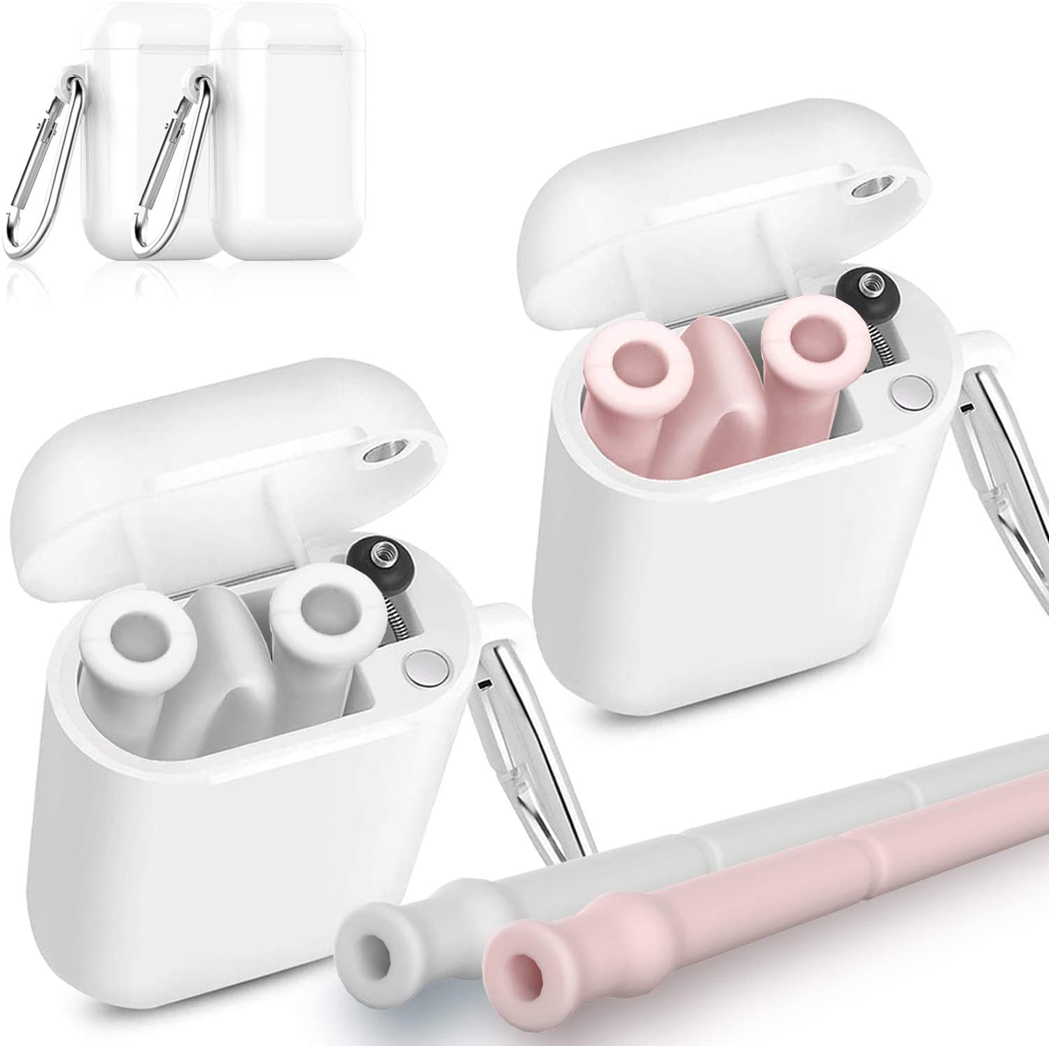 Reusable Collapsible Silicone Drinking Straws Set - Eco Friendly Foldable Straws,2 Carrying Case and 2 Cleaning Brush,Kids Friendly, BPA Free,Portable, for Travel, Household, Outdoor. (Teal+Gray)