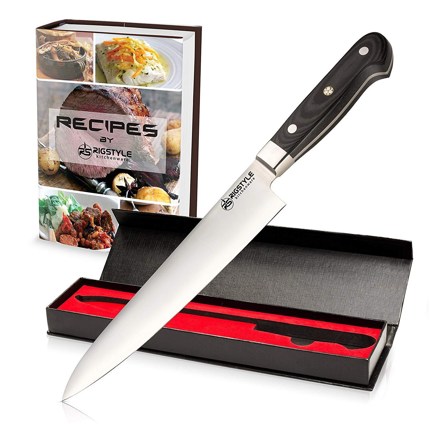 This RIGSTYLE 8-inch German professional chef knife is made of a high-carbon stainless steel, sharp blade and an ergonomic handle. Comes with gift box.