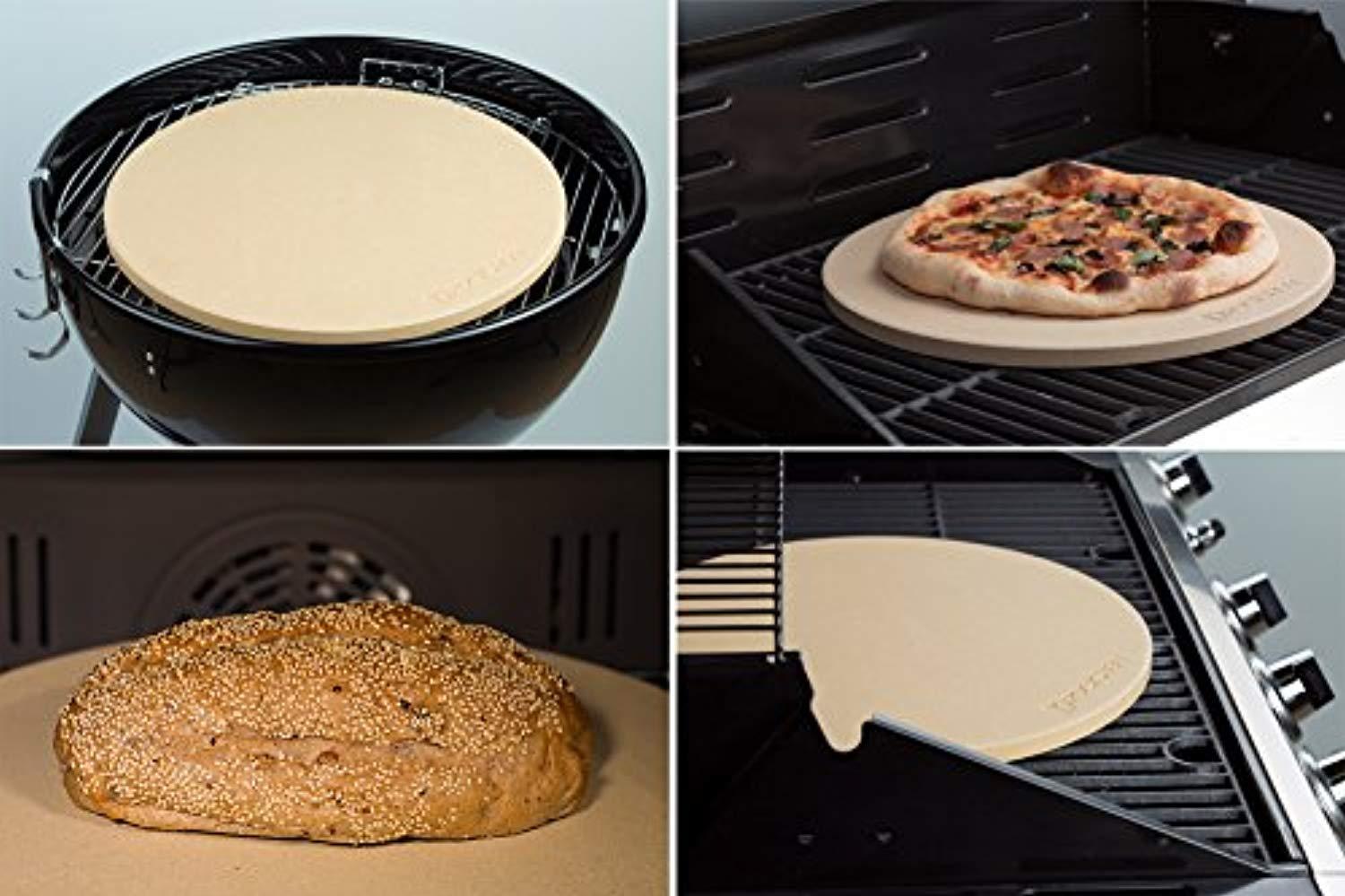 • PIZZERIA QUALITY PIZZAS AT HOME ANY TIME. You can easily get pizzeria quality pizza in the comfort of your home. In order for you to have an optimal experience of cooking, it distributes heat evenly, provides you a crispy color crust that you always wanted. This stone is not only for making pizzas but can also be used to bake cookies, bread, biscuits and much more. You can even heat ready-made pizzas for better results.