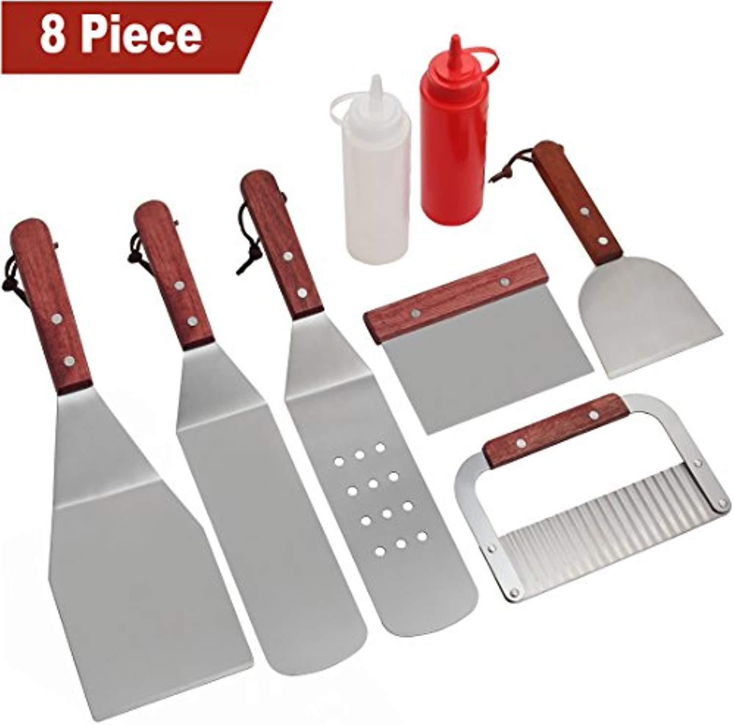 ROMANTICIST 8Pc BBQ Griddle Accessories Kit - Heavy Duty Stainless Steel Professional Griddle Tool Set - Great for Flat Top Cooking Camping Tailgating