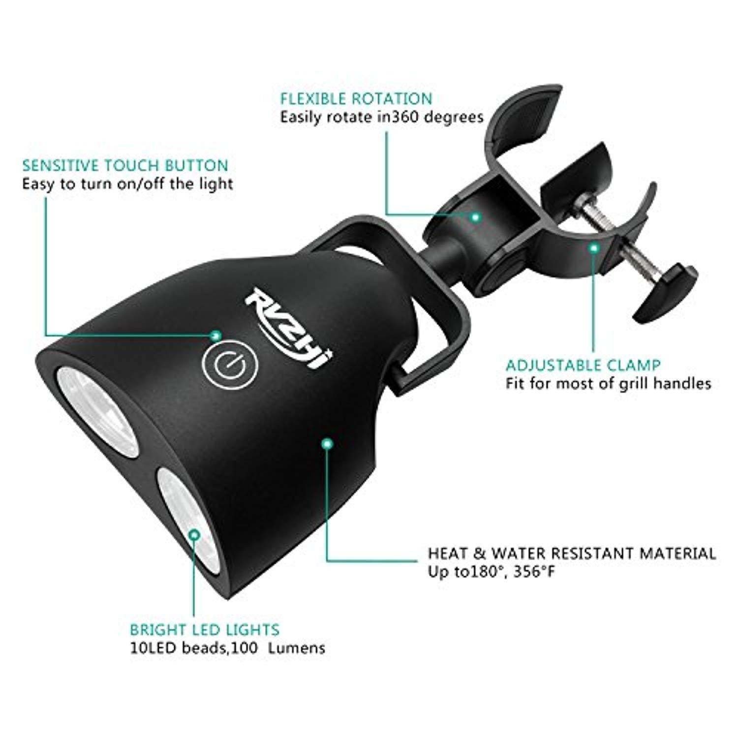 • √ 【UPGRADE BBQ GRILL LIGHTS】-- Unlike other BBQ grill right make of cheap plastic materials, and often simply stop working for no apparent reason. Our RVZHI barbecue grill light make with durable nylon glass fiber, with 10 ultra bright LED Grill Light (100 lm), long use for 50000 hours without worrying about the life of the bulbs