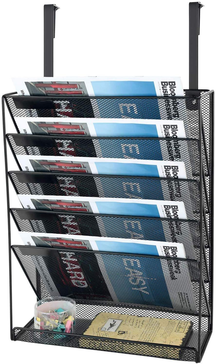 Samstar Hanging Wall File Organizer, Mesh Metal Wall Mounted File Folder Holder for Cubicle Partition Office Home, Black