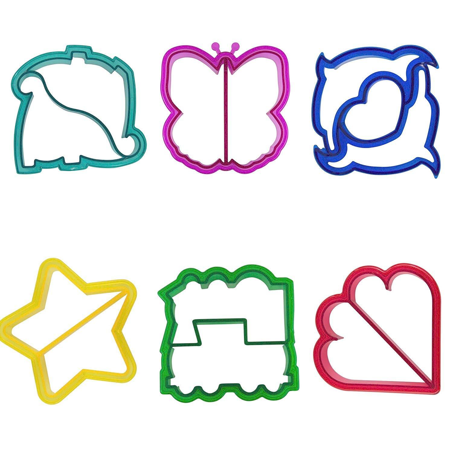 Includes 6 cutters shaped as: dinosaur, butterfly, train, heart, dolphin, and star. Made of food-grade plastic; BPA...