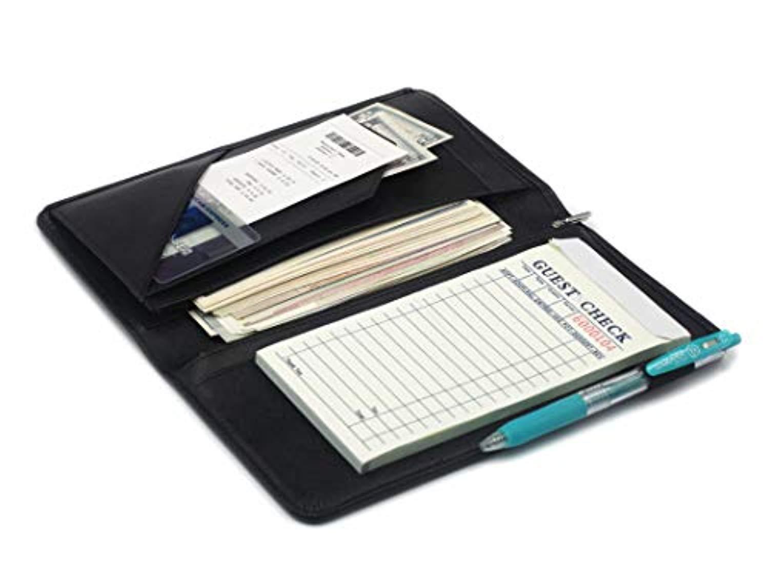 • All in one keep your organized: It has everything you need to hold cash, coins, note pads, pen, credit cards and wine/food menu specials.