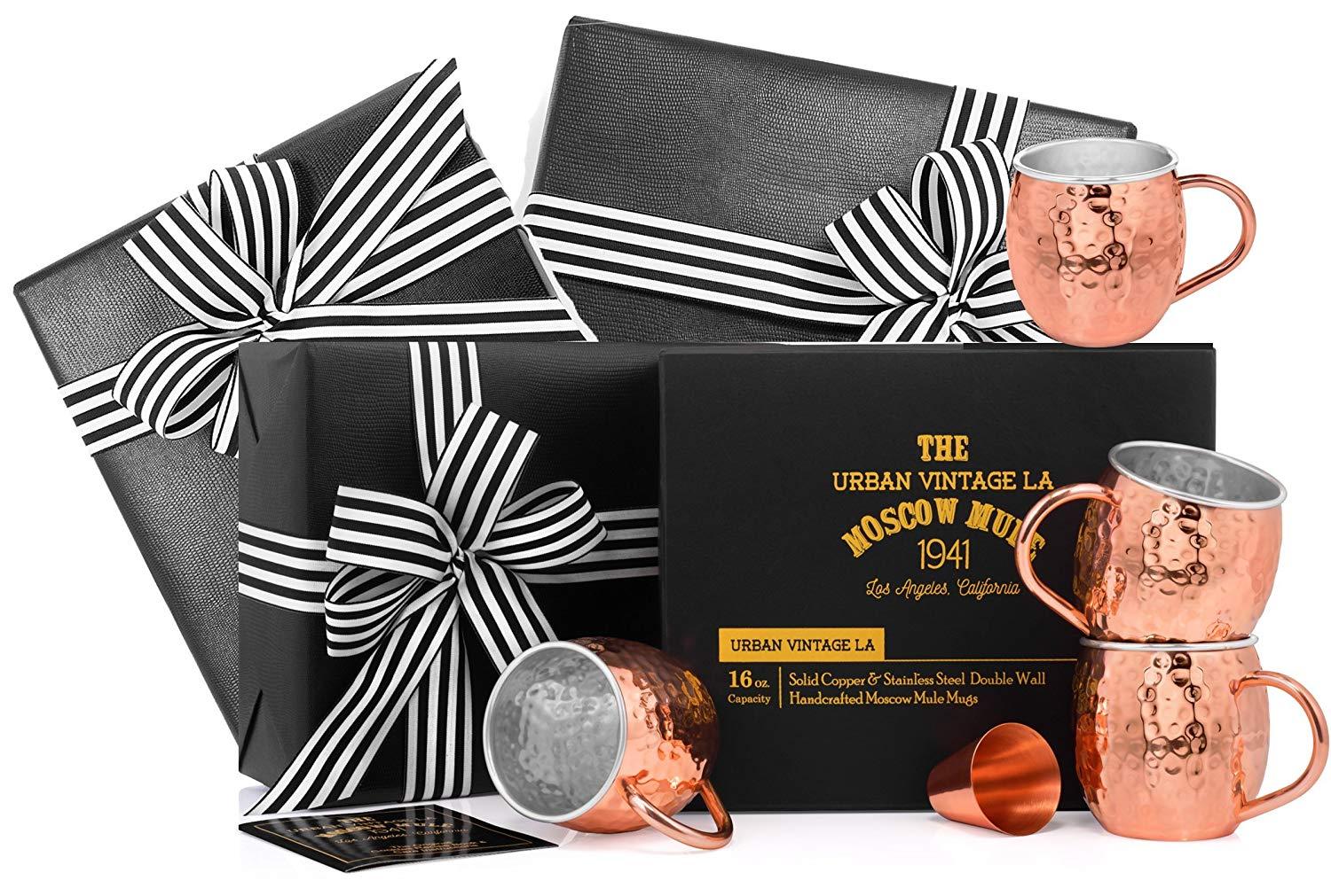 • GIFT BOXED WITH COPPER SHOT GLASS: Your copper gift set includes four 16-oz. mugs, beautifully boxed with our solid copper shot glass, illustrated recipe book & helpful care guide. Perfect for, Christmas, holiday, seventh wedding anniversary, wedding, retirement, birthday, housewarming, bridal showers, groomsmen parties, hostess gift-giving, gift for men, gift for women and more.