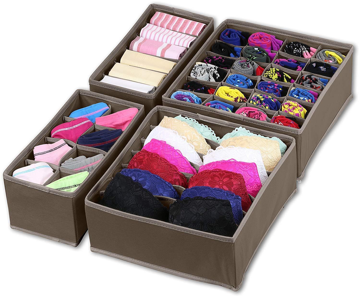 • The item includes 4 bins: 6 cell(scarves, ties), 8 cell(underwear, briefs, ties), 7 cell(bra), 24 cell(socks)