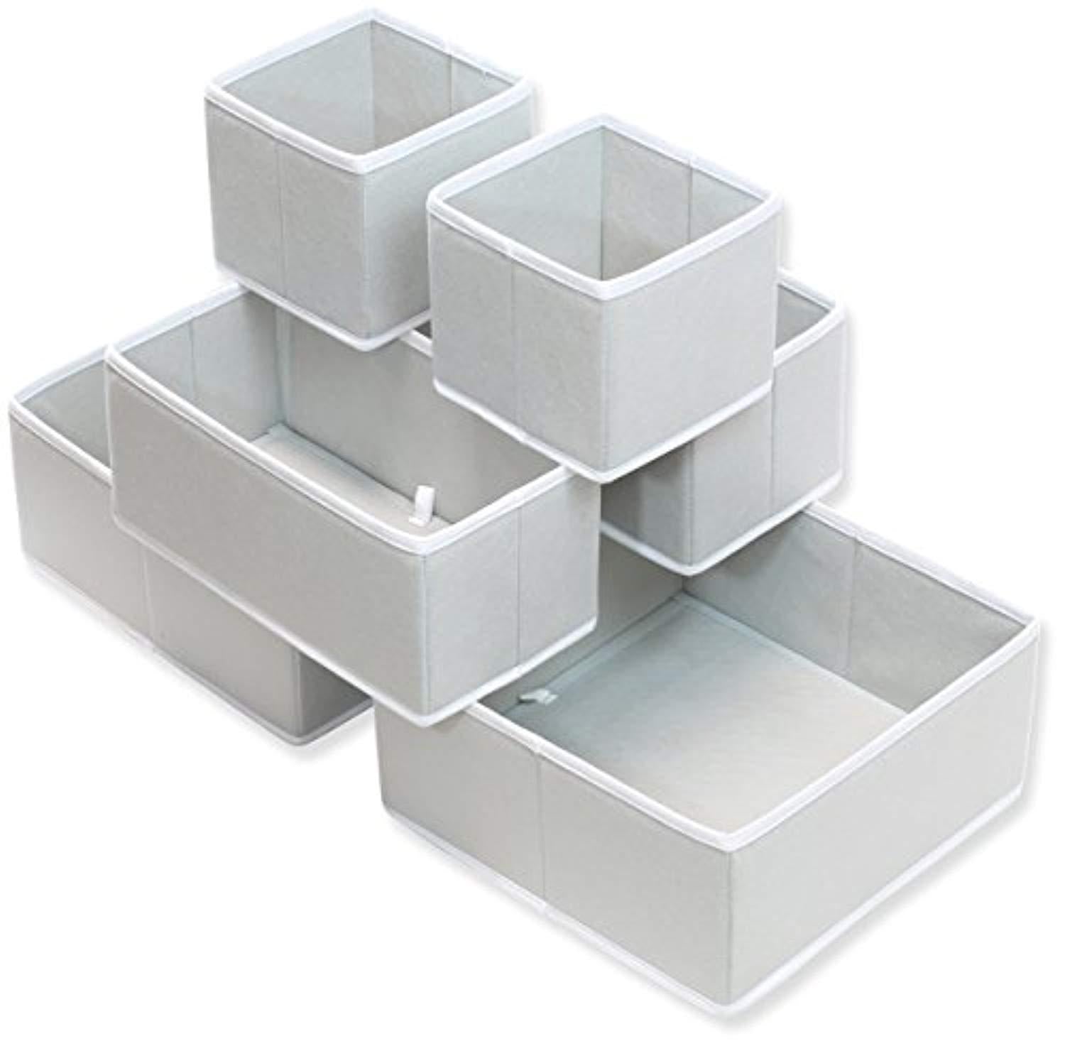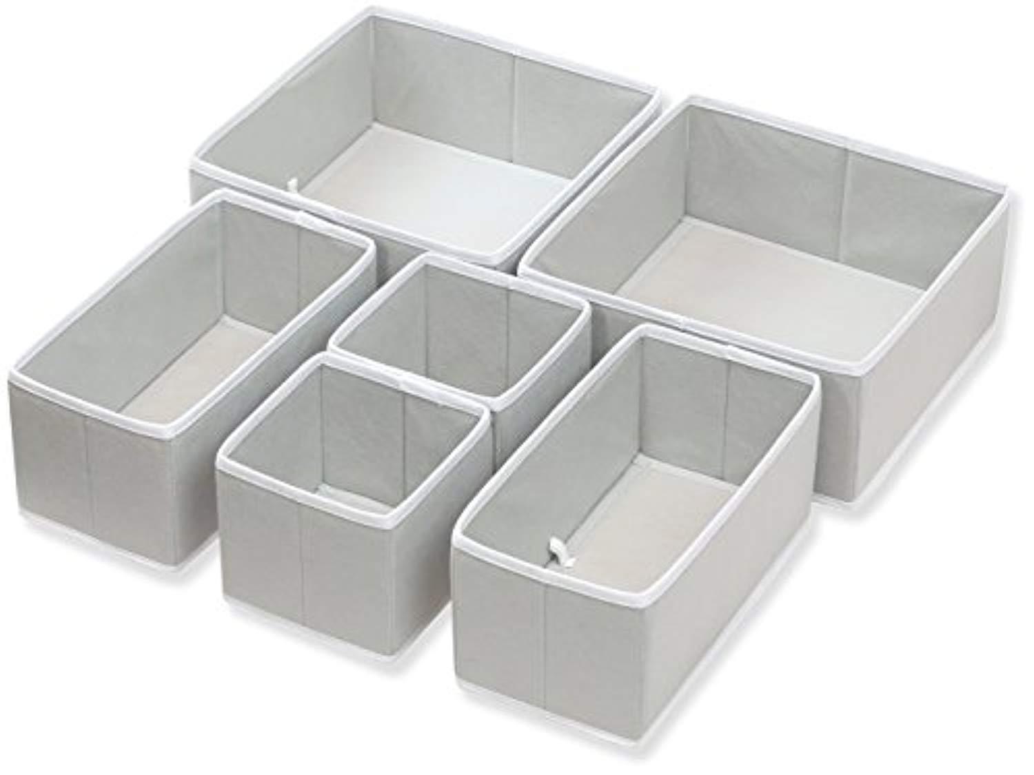 Simple Houseware Foldable Cloth Storage Box Closet Dresser Drawer Divider Organizer Basket Bins for Underwear Bras, Gray (Set of 6)