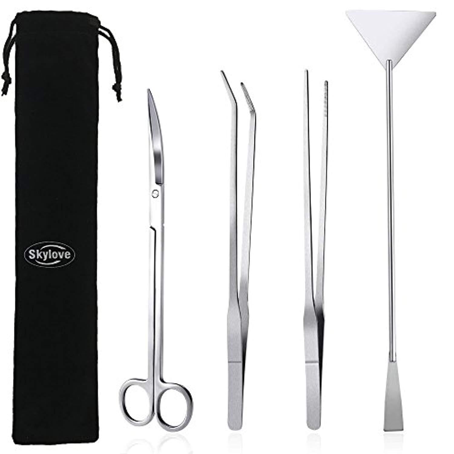 • 4 IN 1 AQUASCAPING TOOLS - Straight Tweezer, Curved Tweezer, Aquatic Curved Scissor, Spatula. Comes with a decent velvet pouch, for you to package well when not in use.